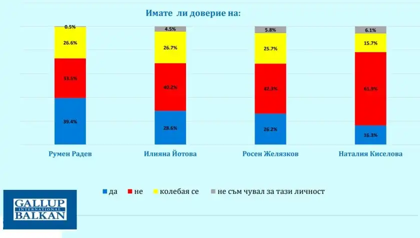 Не се наблюдават съществени размествания в доверието към заемащите висши държавни длъжности и сред партийните лидери.