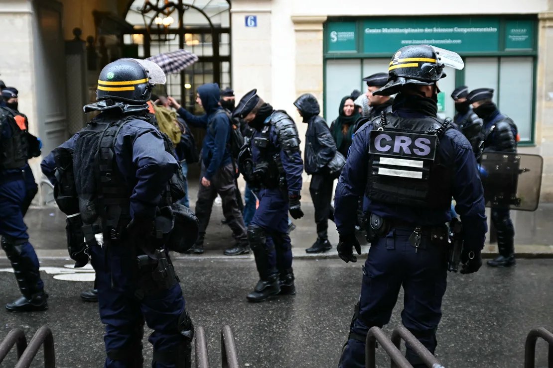 Директорът на последния, Жан Басер, вчера отхвърли искането на протестиращите да преразгледа отношенията на институцията с израелските университети. Десетки студенти незабавно започнаха седяща демонстрация в университета, за да протестират срещу това решение, докато студентски представител каза, че един студент е започнал гладна стачка, за да протестира срещу начина, по който Sciences Po потиска студентите, и се очаква други колеги да последват примера му.
