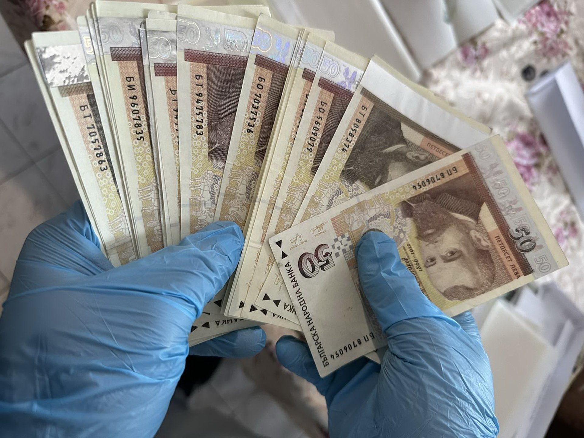Намерени са банкноти по 50 лева, също и така и по 500 евро, както и долари. Открита е техника за изработване на фалшификатите.