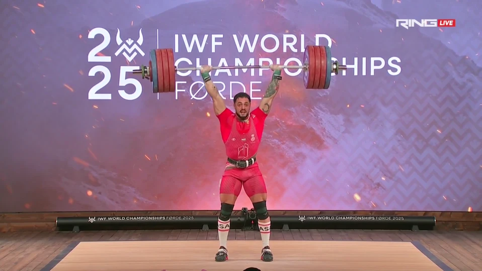 А надпреварата не започна по най-добрия начин за олимпийския шампион при 89-килограмовите, който направи само един успешен опит в изхвърлянето - на началната тежест от 173 кг. А след това изпусна последователно 178 кг и 182 кг, което също щеше да е световен рекорд. Това му отреди четвърто място след първото движение, а лидер с рекорд от 182 кг бе иранецът Алиреза Моеини Седех, който направи отлично състезание с шест успешни опита. Но се оказа, че възможностите му в изтласкването не са на нивото на останалите от елита. Седех стигна до 209 кг и двубой от 391 кг за среброто в крайното класиране, а сънародникът му Али Алипур започна с 211 кг, но след това се провали на 217 и 219 кг. Така участвалият в група "Б" колумбиец Алборнос Кинто се добра до бронза с 390 кг (175+215). А Насар се събра и в типичния си стил закова над главата си 219 кг и 222 кг, за да спечели третата световна титла в кариерата си.