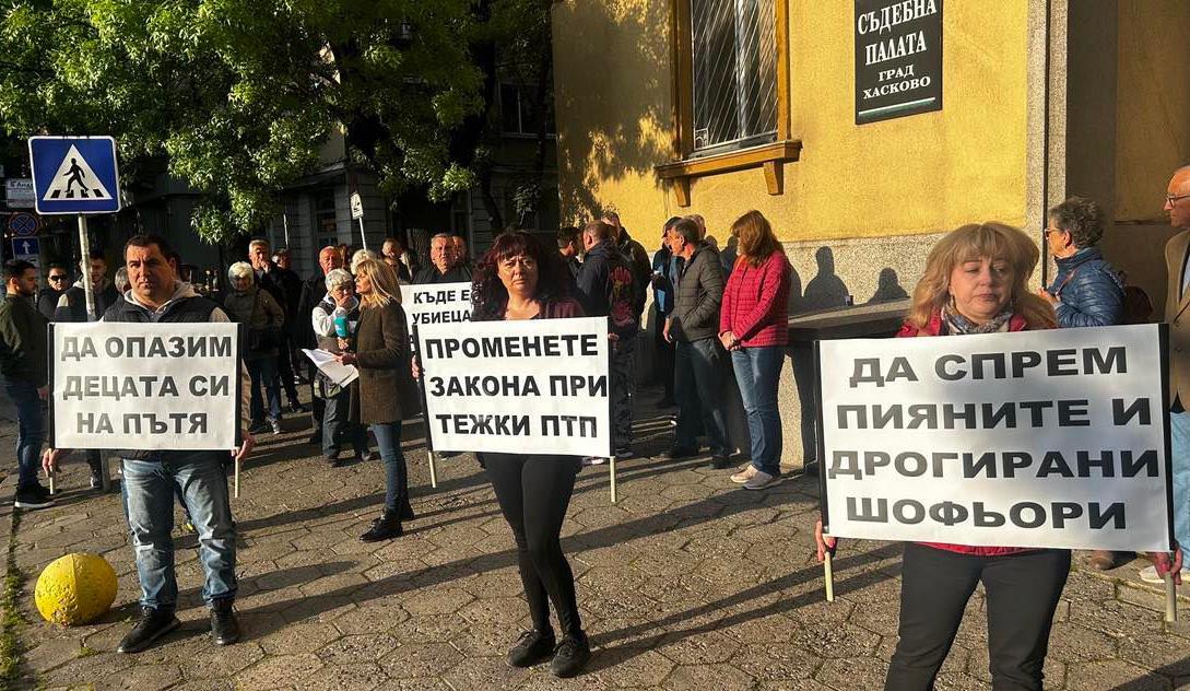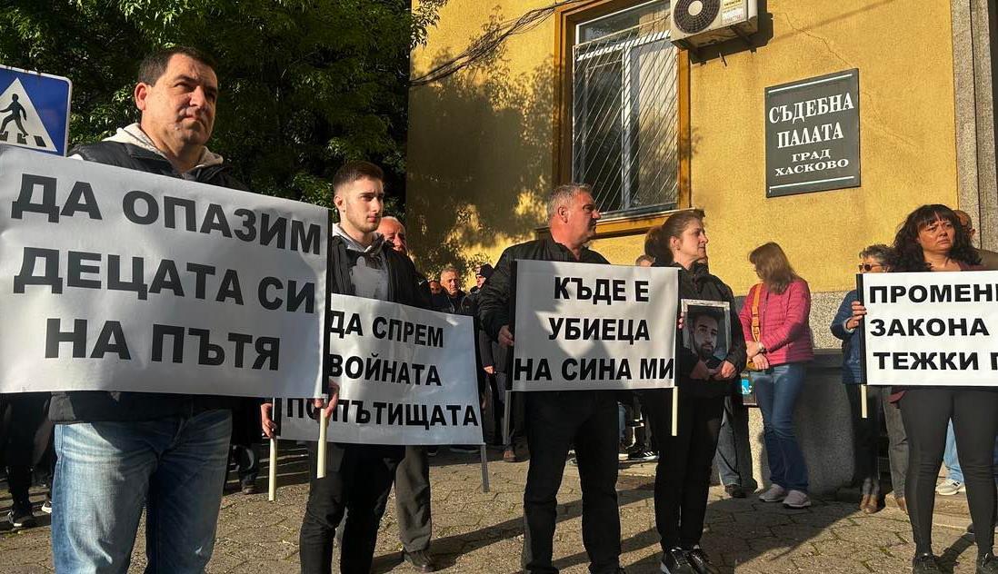 Протест пред Съдебна палата в Хасково организираха тази сутрин родителите на загиналия 23-годишен Йордан Бузуков при тежка катастрофа на 20 март. Пред хасковския съд те, както техни близки, приятели на Йордан и хора, които ги подкрепят, издигнаха плакати: „Къде е убиецът на сина ми?“, „Да спрем войната по пътищата“, „ Да спрем пияните и дрогирани шофьори“, „Да опазим децата на пътя“, както и искания за справедливост и промени в закона при тежки пътни инциденти, съобщава Булфото.