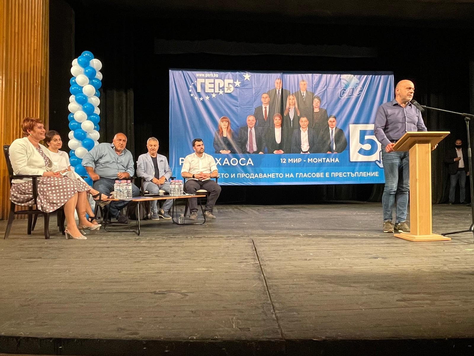 По време на събранието в Монтана заместник-председателят на ГЕРБ Томислав Дончев заяви, че не може да разбере стила на непрекъснато насаждане на омраза и разделение в обществото, който налагат управляващите. „Най-голямата икономическа задача се оказва как да живеем заедно в общество. Не е вече най-големият проблем, че политиците се карат, а и че хората се карат. Трябва да имаме нормални избори, но за първи път в демократичната история ще има съмнения за резултата на изборите. Това досега не се е случвало“, предупреди Дончев.