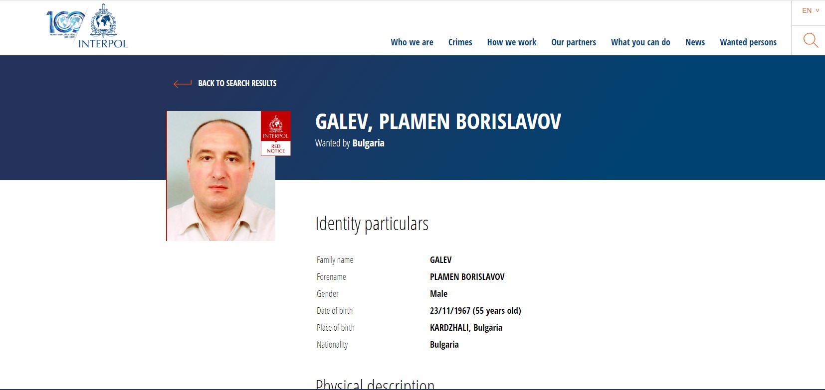 И в момента снимките на издирваните с червена бюлетина Пламен Галев и Ангел Христов са в сайта на Интерпол.
