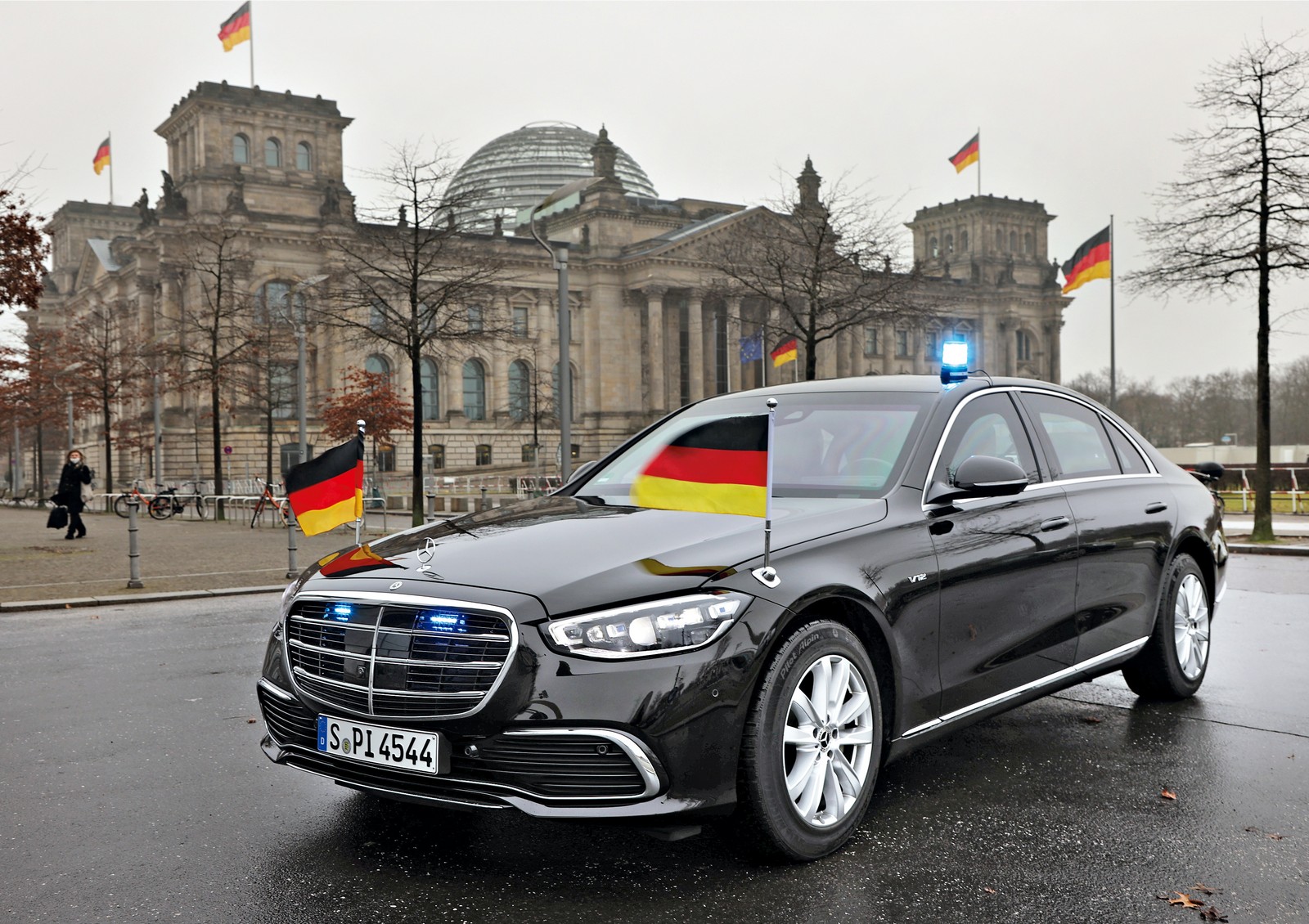 Германският канцлер Фридрих Мерц използва Mercedes S 680 Guard, наследникът на Ангела Меркел Олаф Шолц също кара този модел. Мерц има лична колекция от Порше 911, Мерцедес S-класа и Тесла, а също така е страстен пилот с личен самолет.