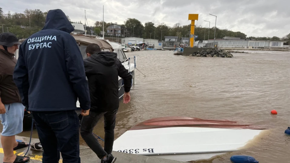 Затворен сухопътният достъп до рибарското пристанище „Крайморие“, там има преобърнати 5 лодки.