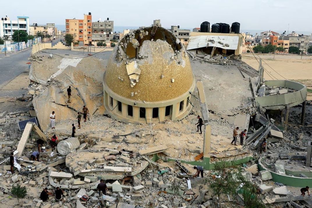 Разрушена от израелските ракетни удари джамия в Хан Юнис, в южната част на ивицата Газа.
