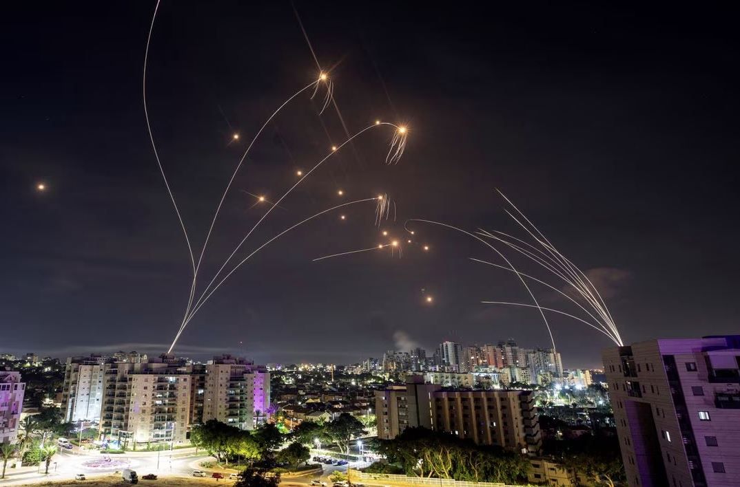 Израелската ПВО система “Железен купол” прехваща ракети, изстреляни от ивицата Газа.