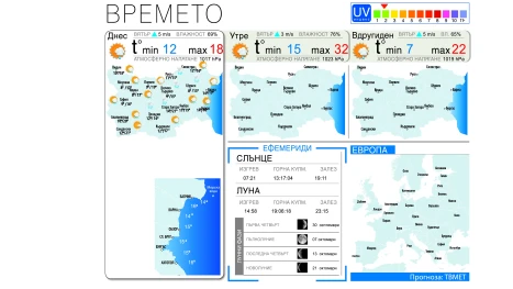 Малко по-топло ще се задържи в югоизточните части от страната, както и по Черноморието - максималните температури там ще са около 15°-16°. И на морския бряг ще остане облачно и с валежи от дъжд. Ще духа слаб до умерен северозападен вятър. Вълнението на морето ще отслабне до умерено - 3 бала.