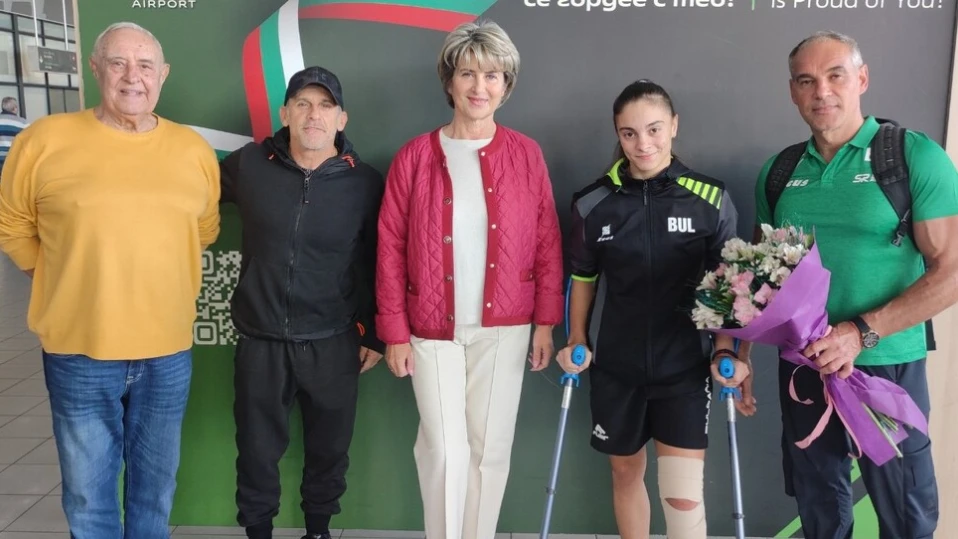 Председателят на Българския олимпийски комитет Весела Лечева посрещна на летище "Васил Левски" Валентина Георгиева, която получи контузия по време на Световното първенство по спортна гимнастика в Джакарта (Индонезия).