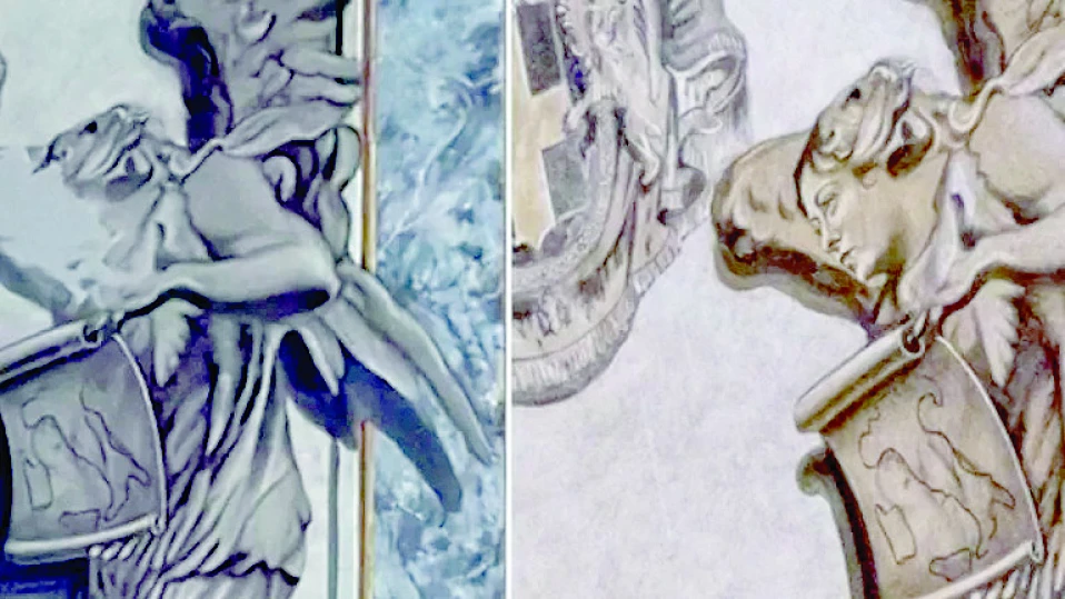 Сега би трябвало да започне възстановяване на оригиналното изображение, като по указание на министъра на културата Алесандро Джули са инициирани архивни проучвания с цел да се намери фотографска или проектна дакомунтация на оригиналния стенопис, изографисан през 2000 г. Разследването трябва да послужи за сравнение със сегашната украса на известната базилика, която е резултат от реставрацията, предприета от Бруно Валентинети и негови колеги след течове през май миналата година. И най-вероятно в хода ѝ ангелът над бюста на последния италиански крал Умберто II е “приел” образа на Джорджа Мелони - факт установен миналата събота и възмутил Ватикана. До такава степен, че викарият на Рим кардинал Балдо Рейна заяви възмутен пред медиите в тежкия си проповеднически стил: “Това е кощунство, тъй като изображенията на сакралното изкуство и християнската традиция не могат да бъдат подлагани на неправилна употреба или експлоатация - те са предназначени изключително за подпомагане на литургичния живот!”