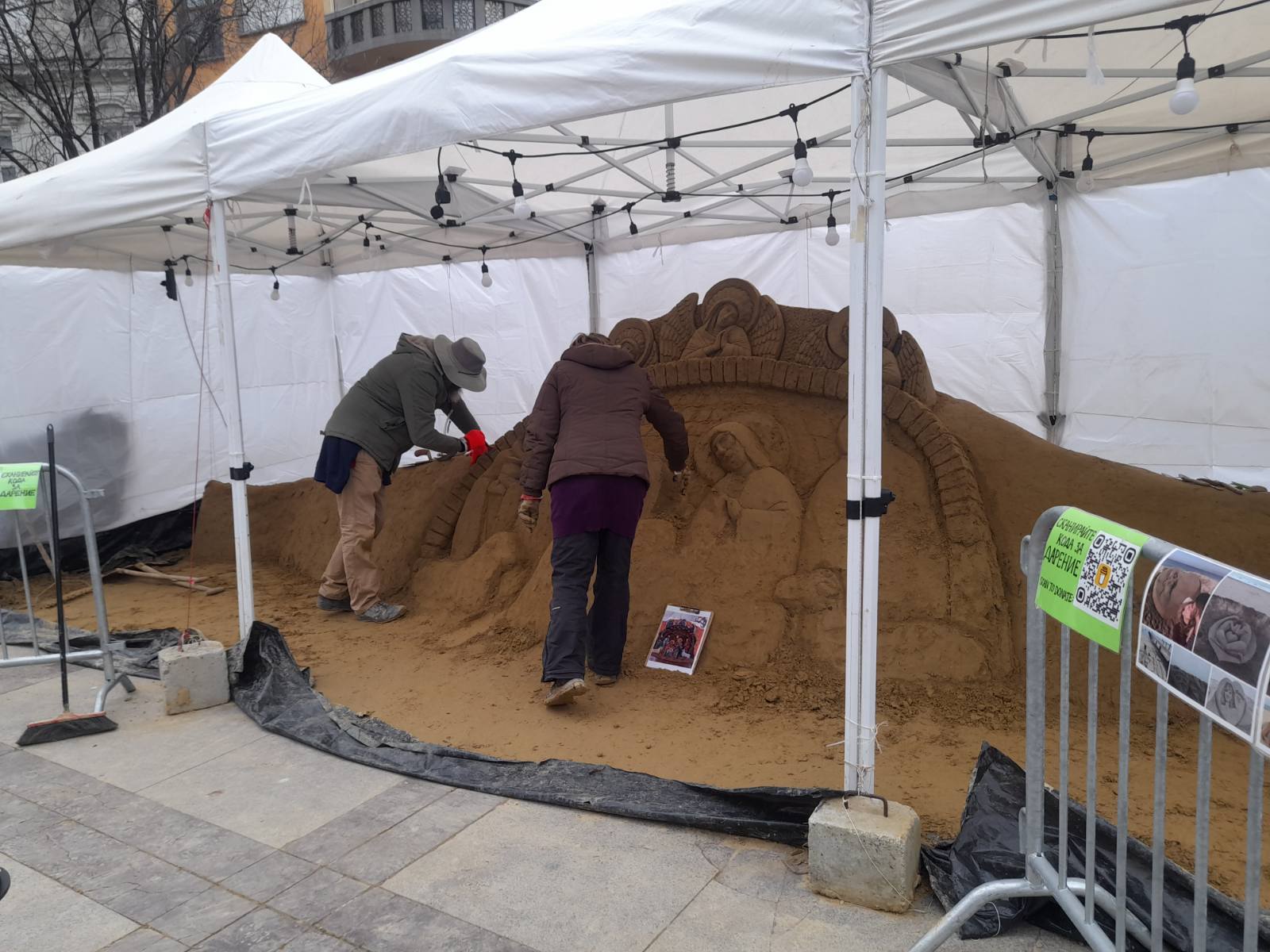 Идеята им е, сцената на Рождество Христово да бъде завършена напълно точно на Бъдни вечер. За целта, те ще използват 10 тона пясък, които вече са доставени пред кметството, на площад "Атанас Сиреков".