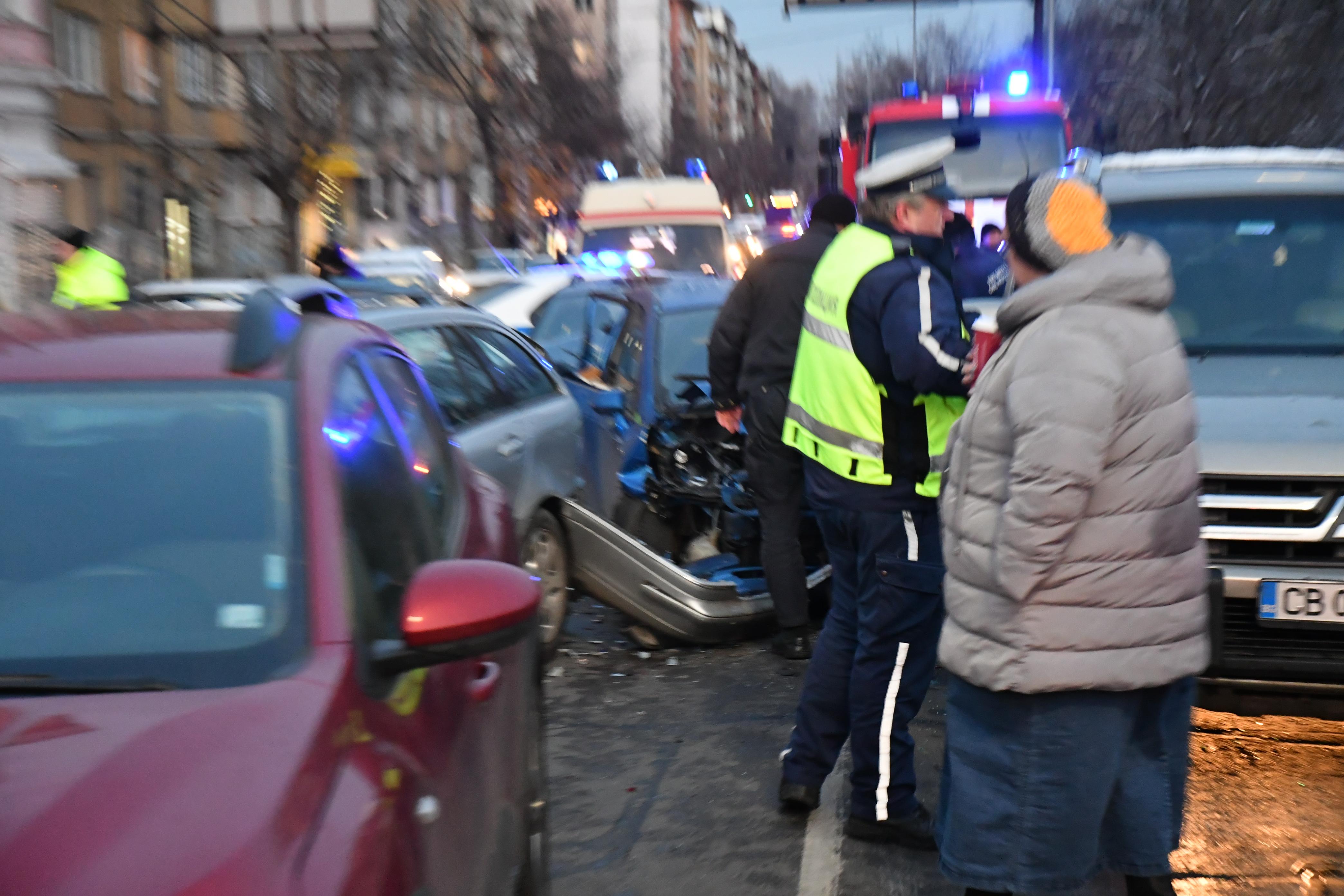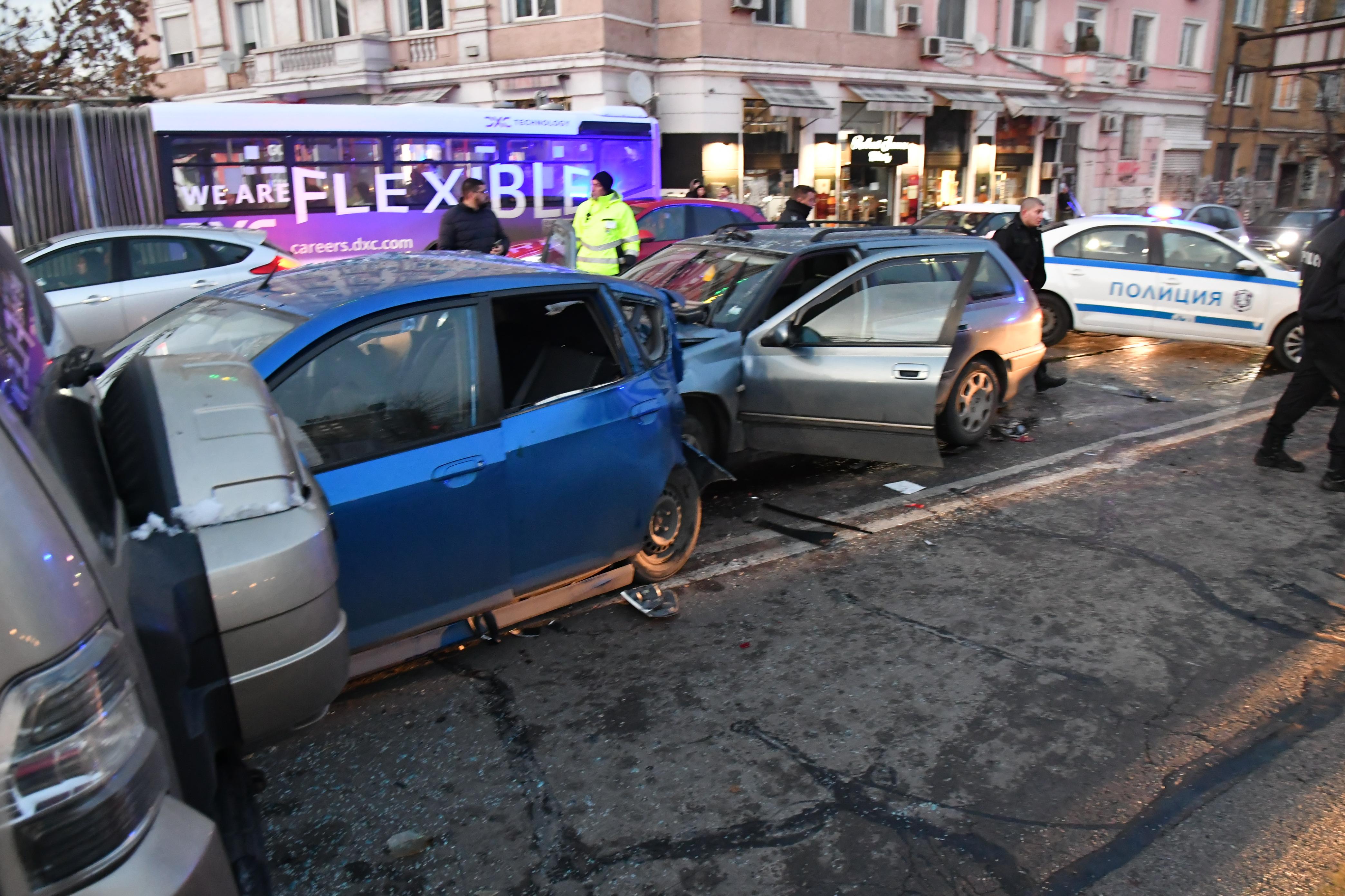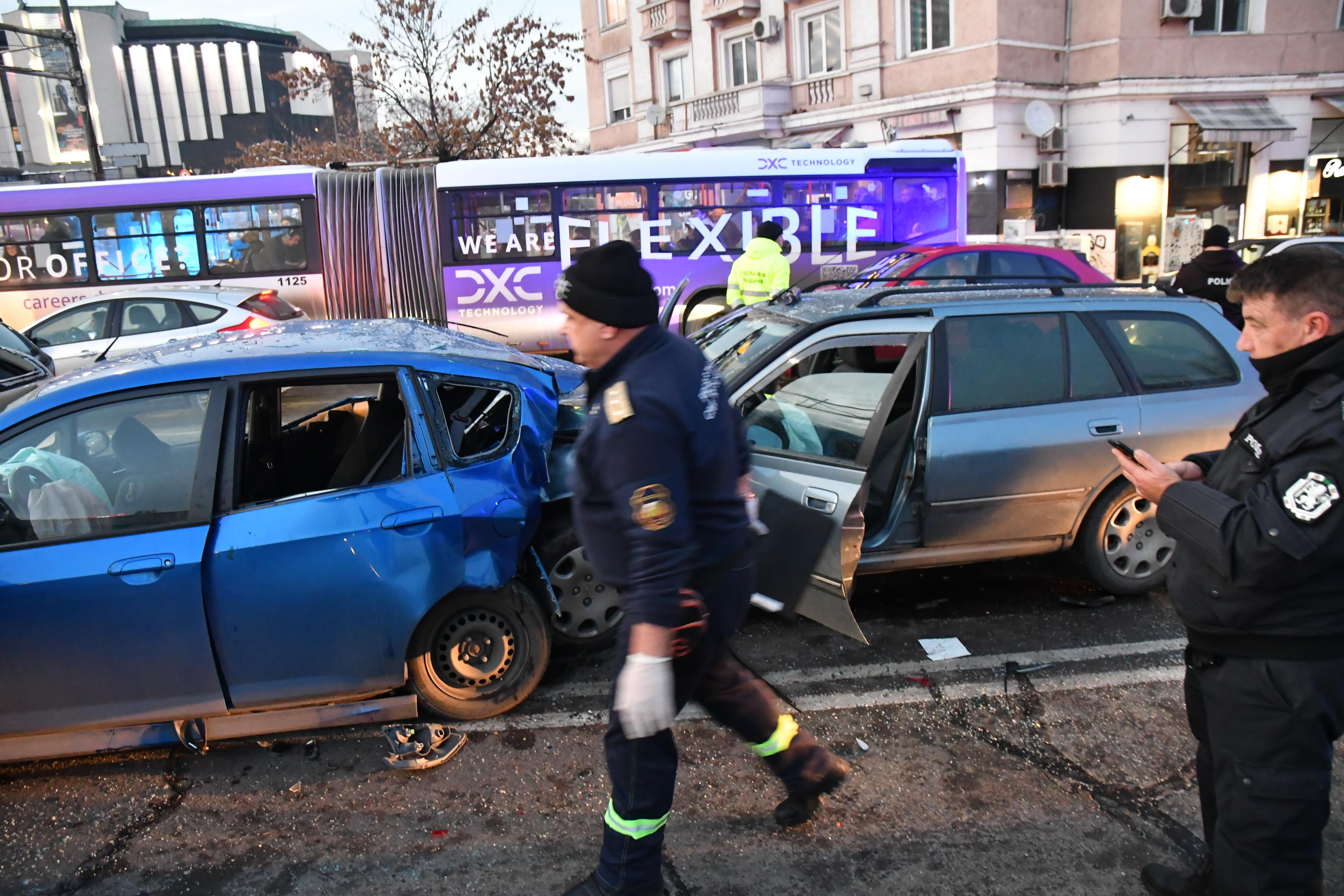 Верижна катастрофа в центъра на София. Осем коли се удариха на кръстовището преди Моста на влюбените до НДК. Сигналът за инцидента е подаден в 16:25 ч. На място пристигат три линейки.