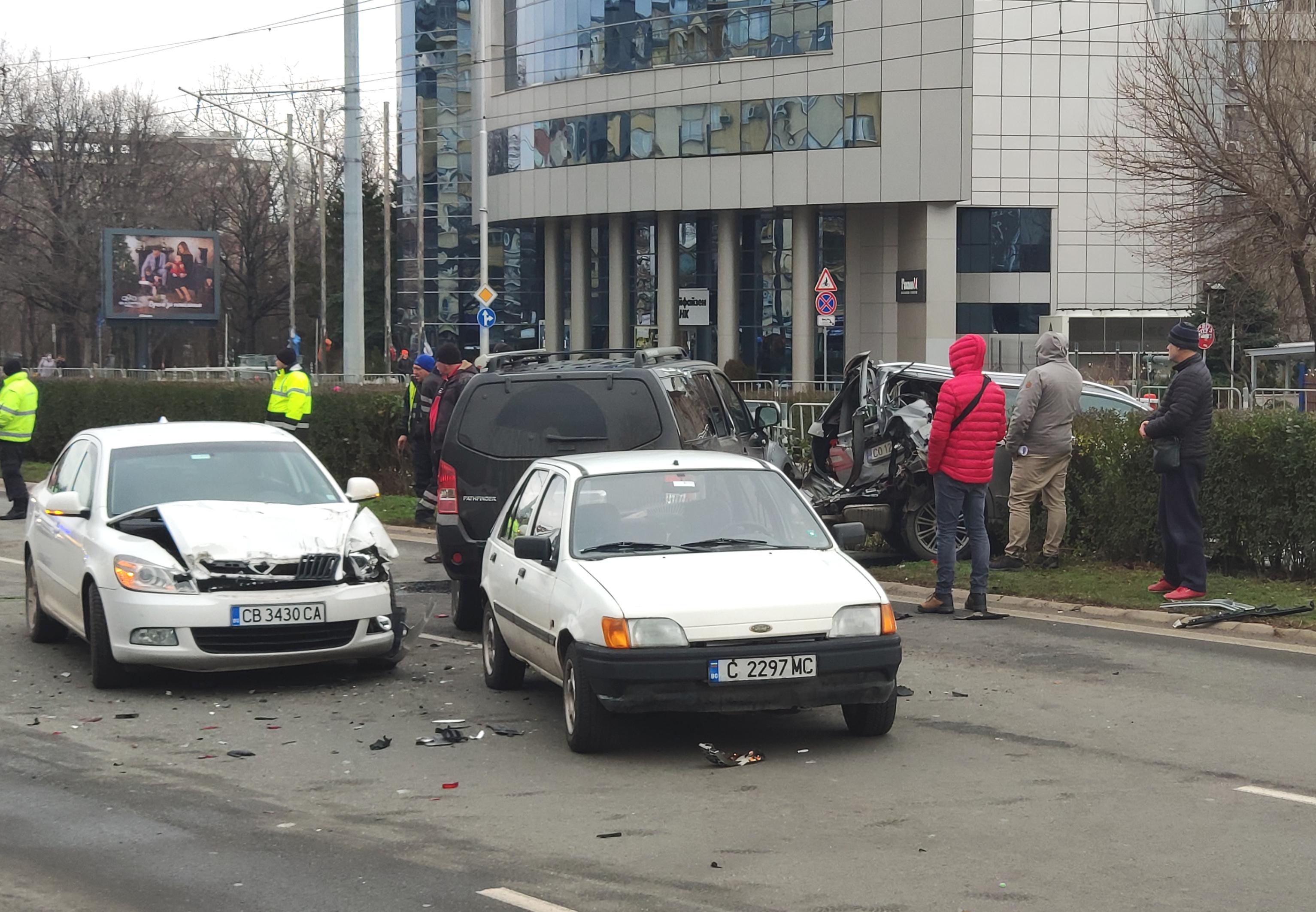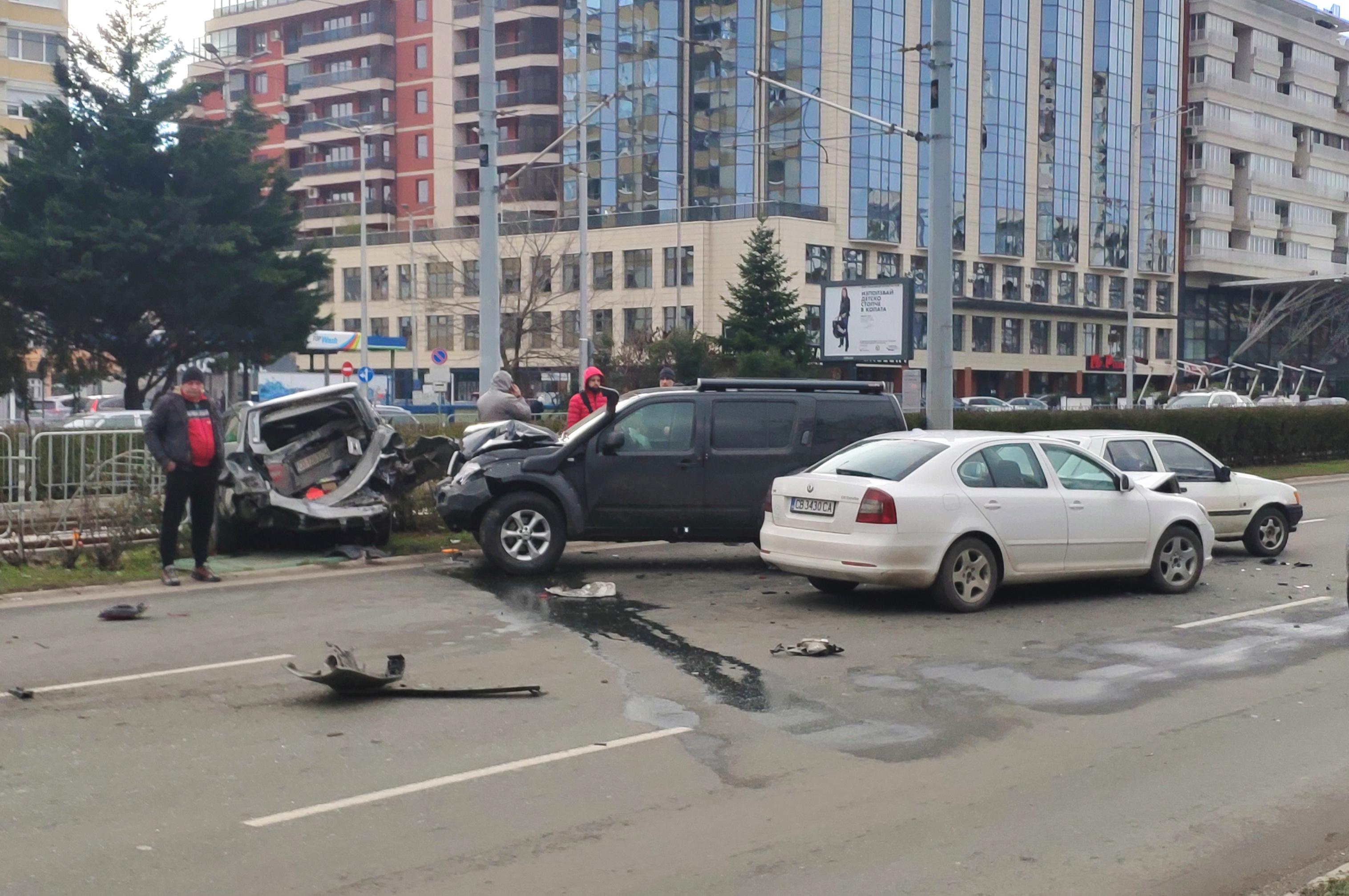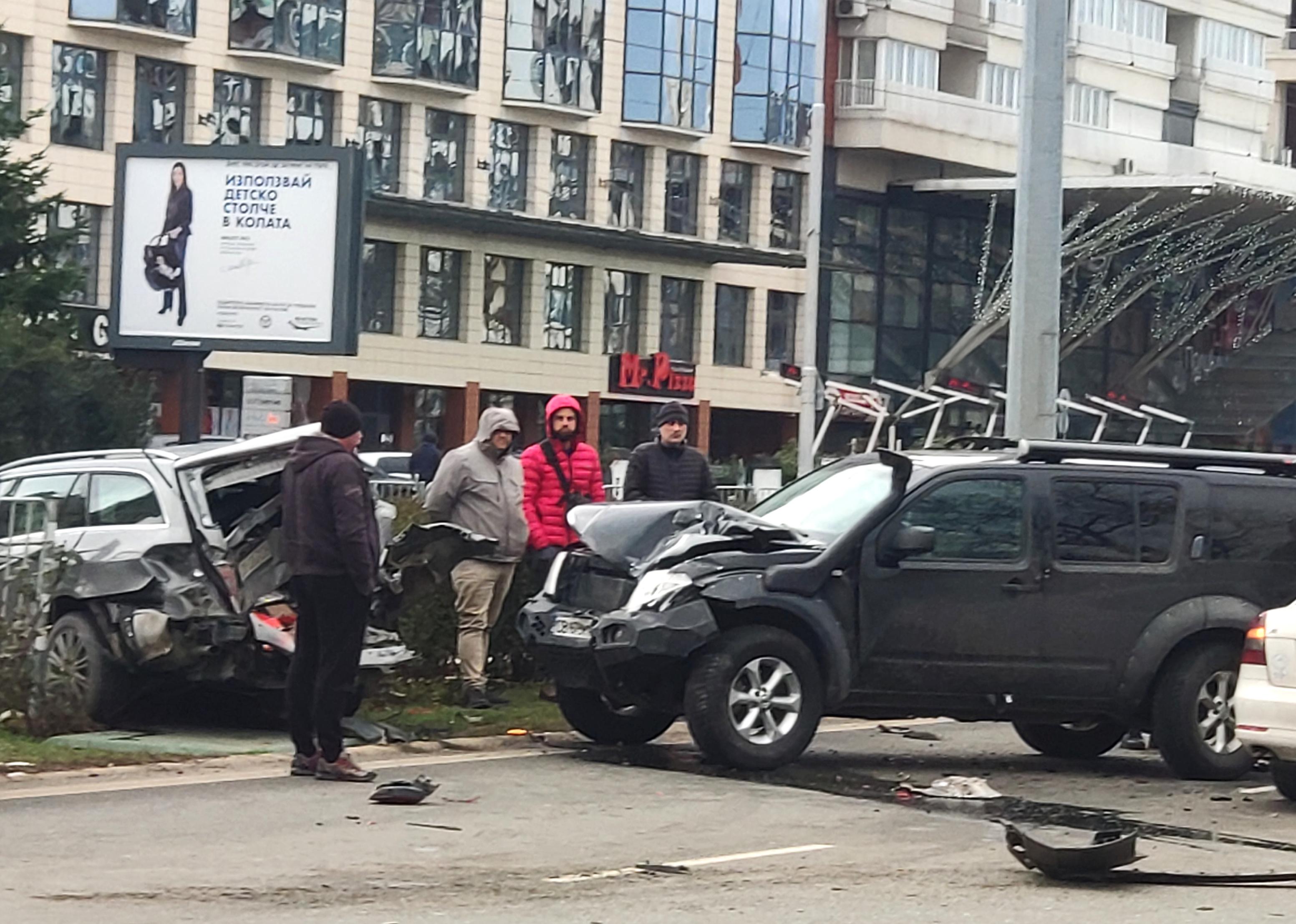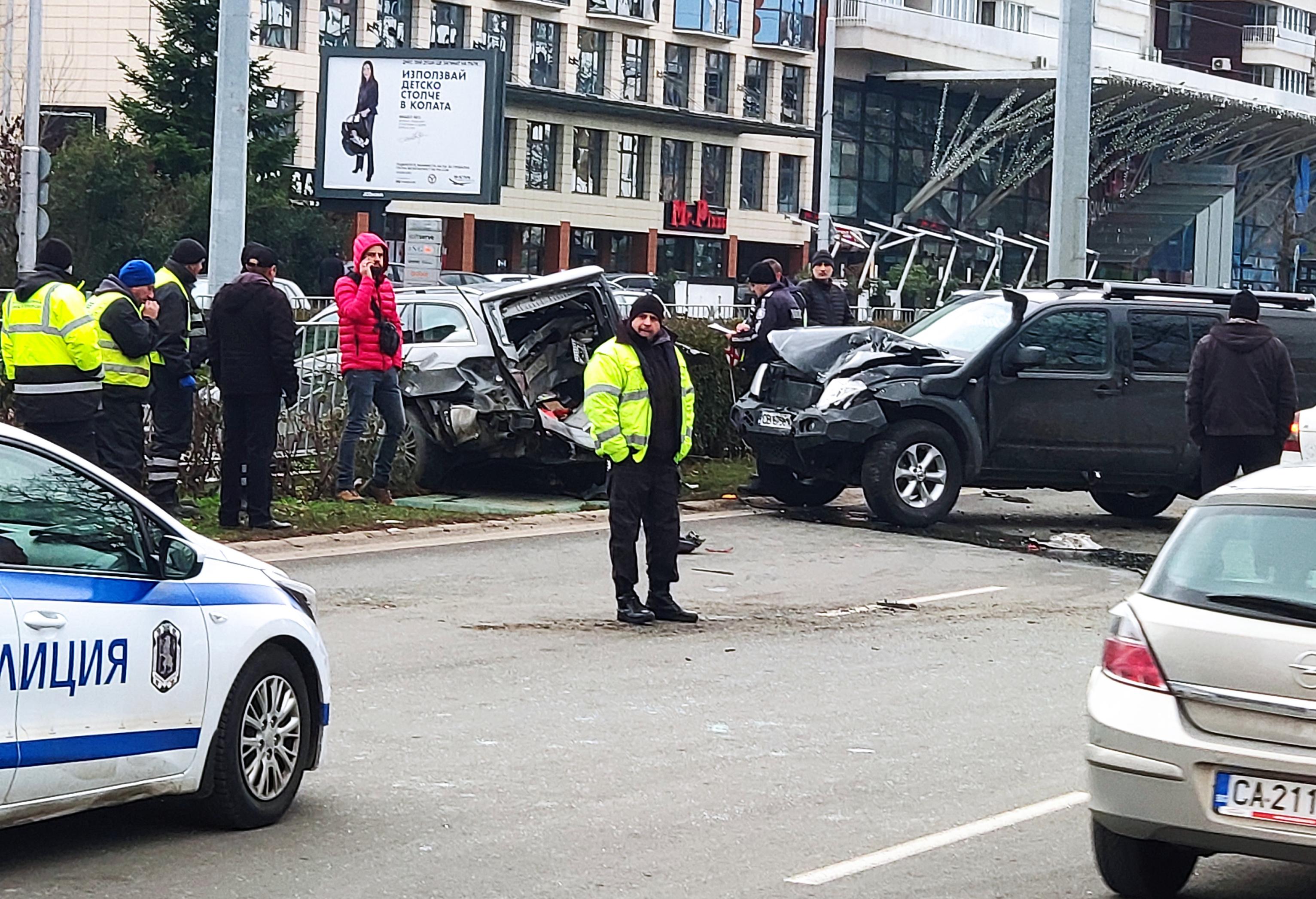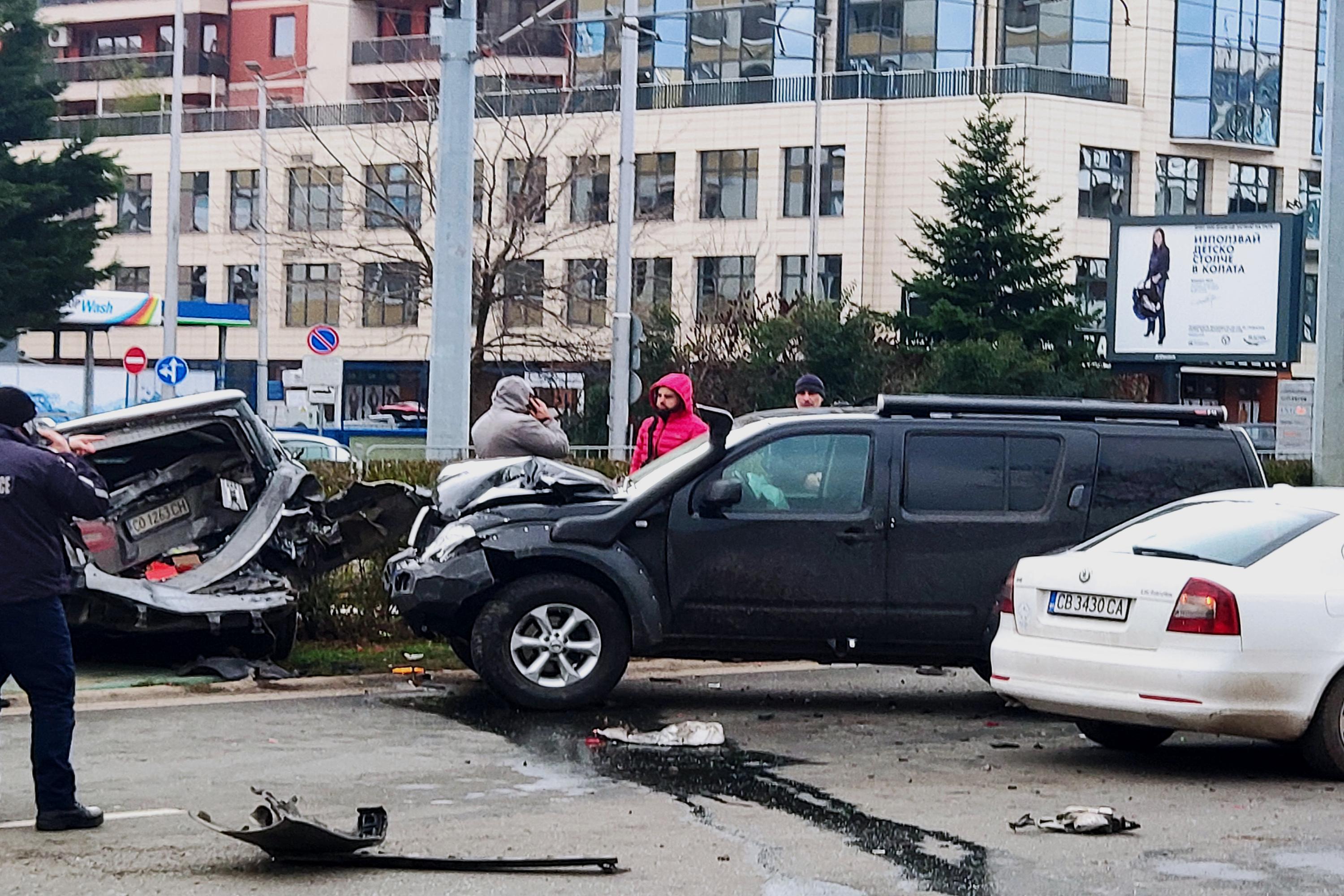 По първоначална информация две коли са чакали на светофар, когато джип с висока скорост се е врязал в последния автомобил. На място са изпратени екипи на Спешна помощ.