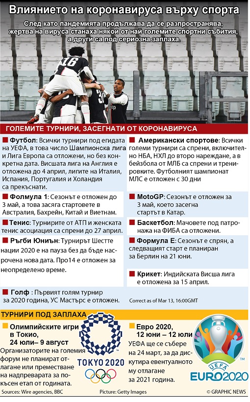 Светът е парализиран от разпространяването на коронавирус. Логично това засяга и спорта, а голяма част от календара бе засегнат. Част от големите турнири вече бяха отложени, а други са под сериозна заплаха.