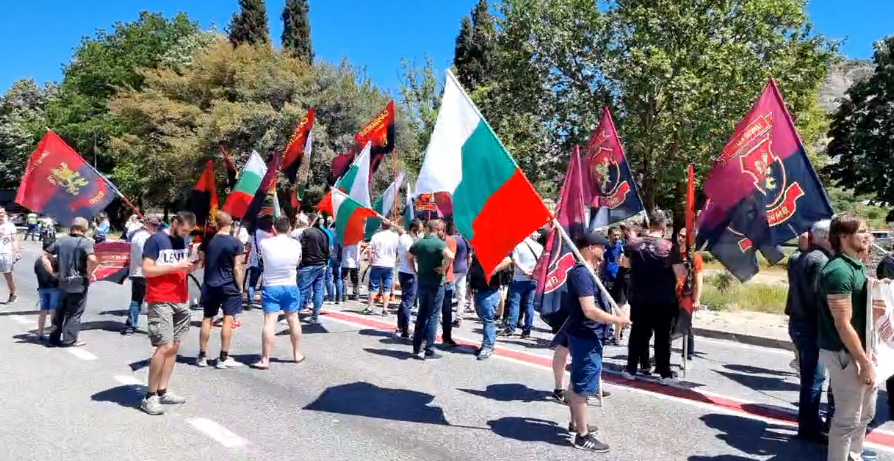 ВМРО на протест. Те блокираха Кресненското дефиле, а причината е позицията на България по отношение присъединяването на Северна Македония към ЕС. От партията изтъкват, че "акцията #НеПредавайМакедония ще продължи неопределено време".