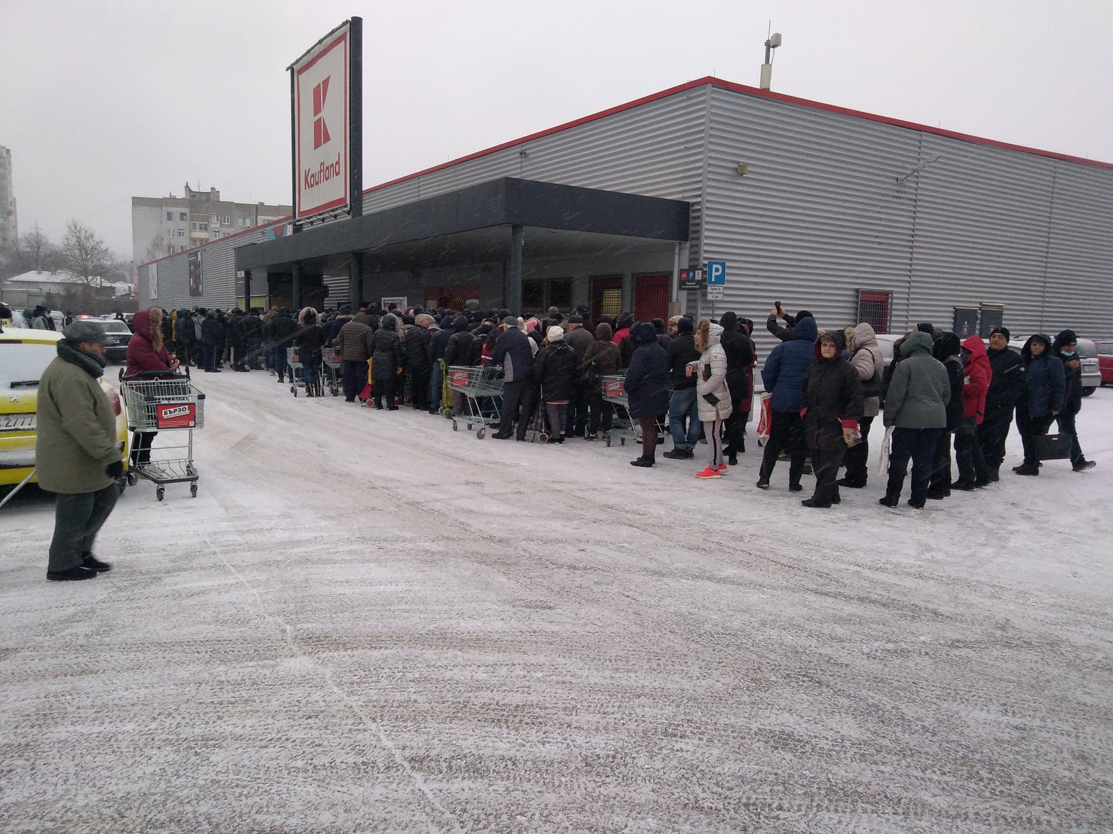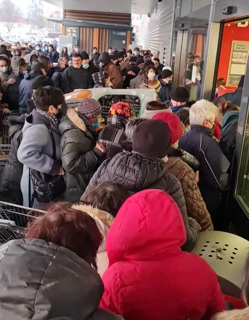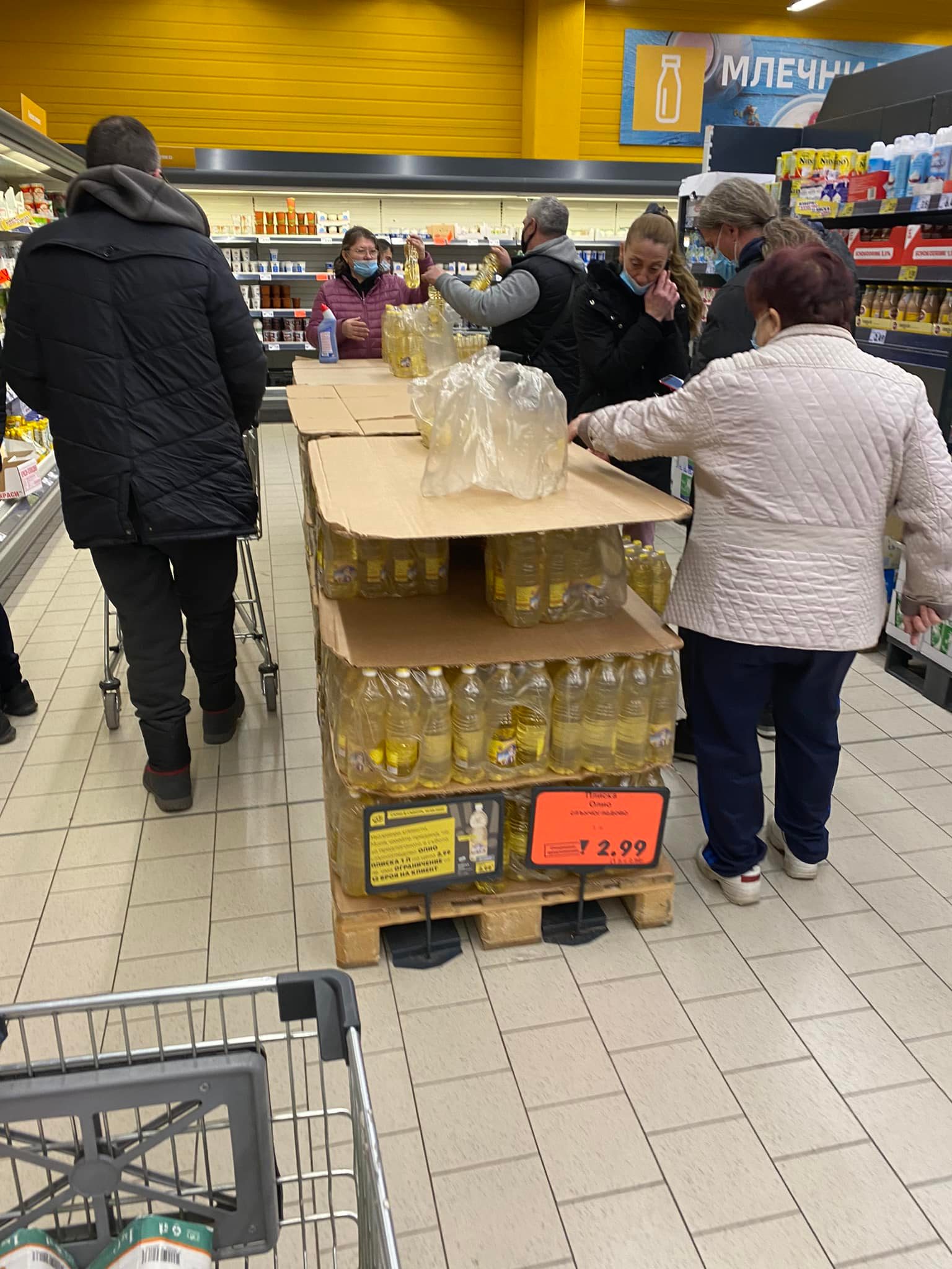 Потребители в социалните мрежи публикуваха снимки и видеа от атмосферата в магазините, която напомня опашките за гориво от преди 10 дни или за тоалетна хартия преди две години.
