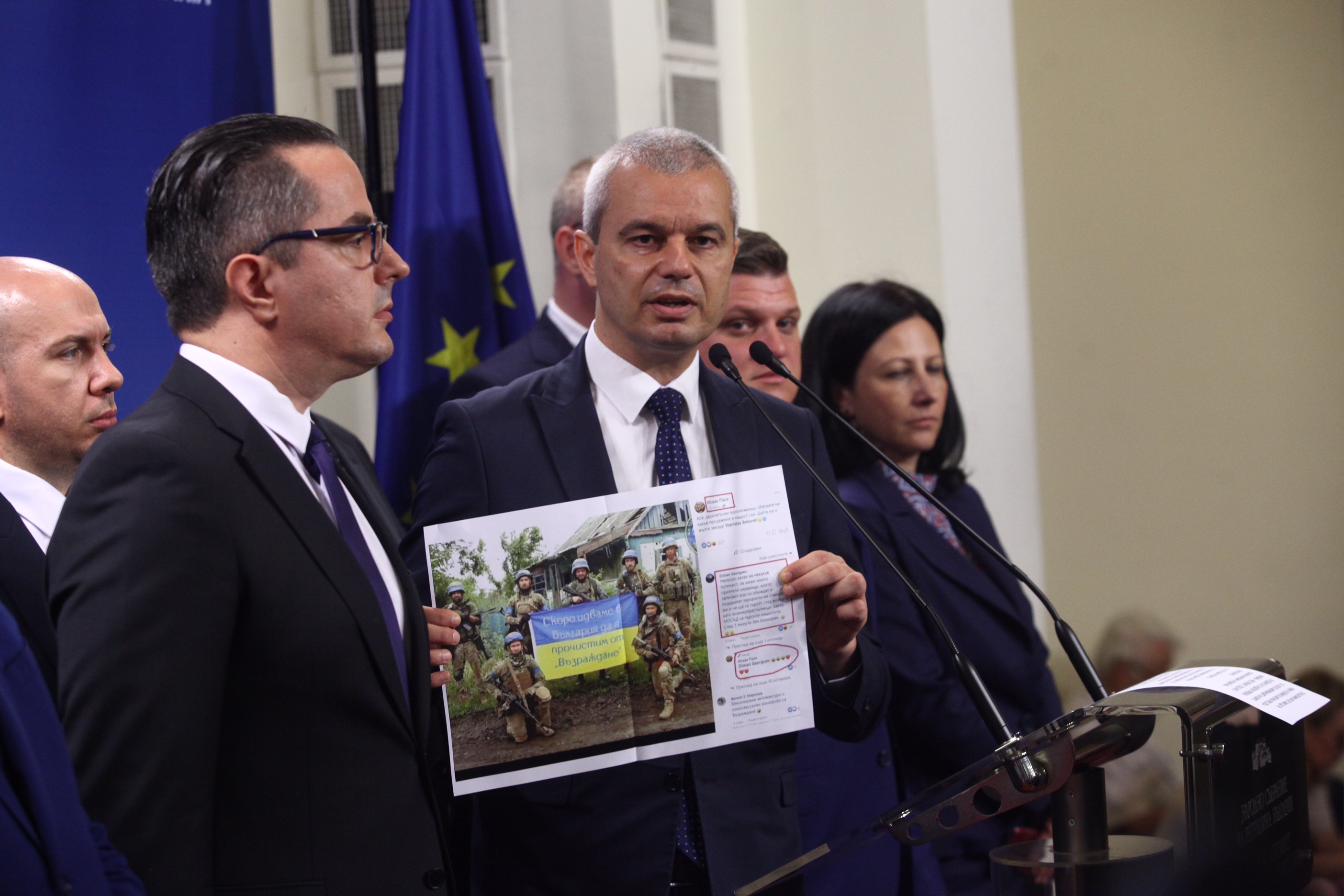 Костадинов каза, че жената им е изпратила съобщението, след което го прочете пред медиите. Някъде видяхте ли заплаха за убийство, аз виждам обиди безспорно, коментира депутатът.