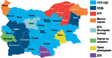 ГЕРБ спечели изборите за кметове в 13 областни града, а коалицията ППДБ, както и БСП победиха в по четири града.