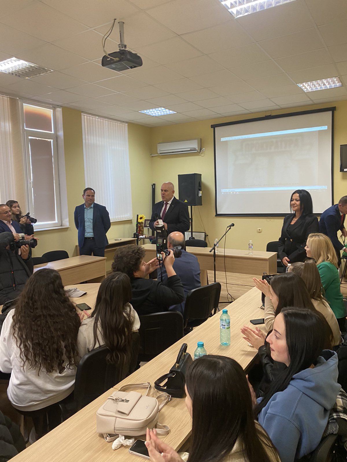 На учениците бе прожектиран филм за професията на прокурорите, а след това Иван Гешев им разказа накратко какви са функциите и правомощията на прокуратурата.