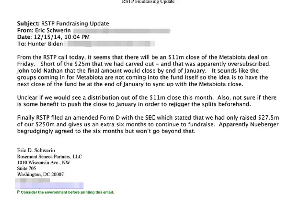 RSTP е дъщерно дружество на Rosemont Capital, инвестиционна компания, основана от Хънтър и доведения син на бившия държавен секретар Джон Кери - Крис Хайнц, през 2009 г.
