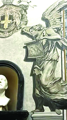 А след като в събота в. “Република” припозна Джорджа Мелони в ангела отдясно на бюста на Умберто II, базиликата “Сан Лоренцо ин Лучина” се изпълни с богомолци, сеирджии, телевизионни камери, италиански и чуждестранни журналисти, нетърпеливи да установят дали ангелът, отдаващ почит на последния крал от Савойската династия, прилича на министър-председателката.