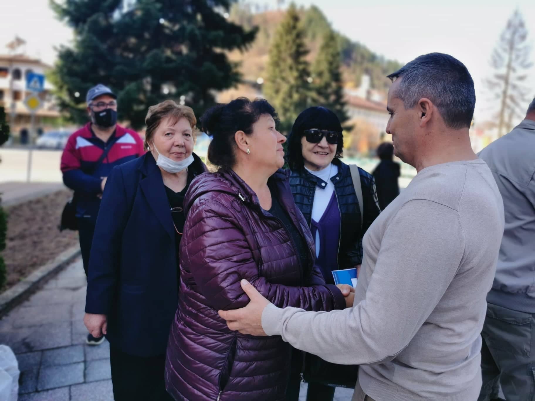 „Нашата партия показа през последните 10 години, че имаме кураж да се изправим пред всички кризи и да ги преодолеем. Изправяме се смело и на центъра на Мадан, без да ни е страх, че някой ще ни снима и ще има последствия от това“, посочи д-р Събев.