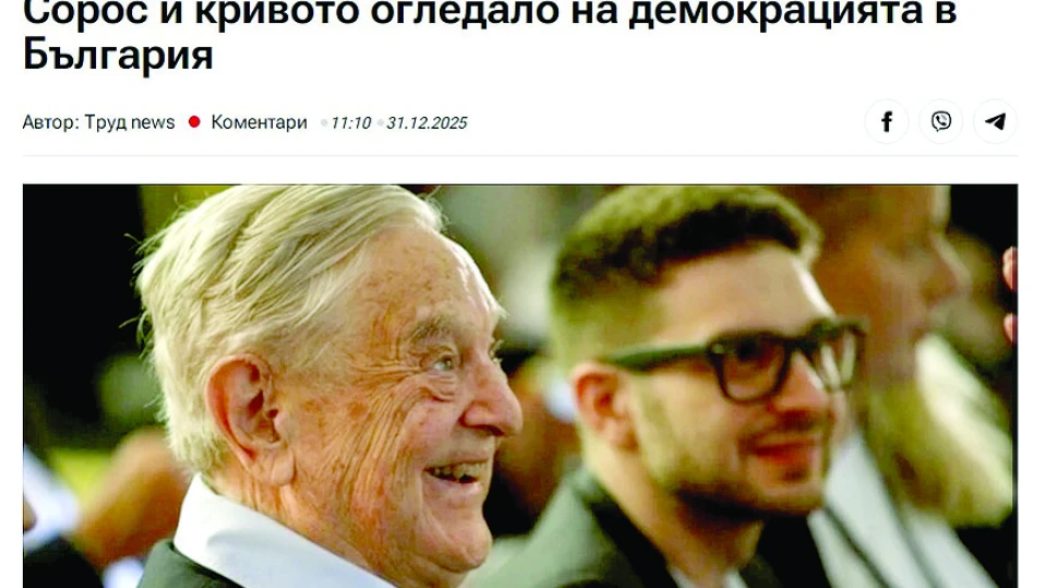 Примери за активностите на Джордж Сорос, сина му Александър и финансираните от тях фондации в България, за връзките им с партии, медии, НПО-та, политици и магистрати предложи на 31.12.2025 „Труд news“ в „Сорос и кривото огледало на демокрацията в България“. Добре се вижда кои са облажващите се от това финансиране за подривни срещу страната ни дейности.