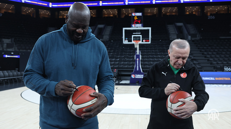✍️ Later, Erdogan and O’Neal signed basketballs together pic.twitter.com/8aFF6rpd78