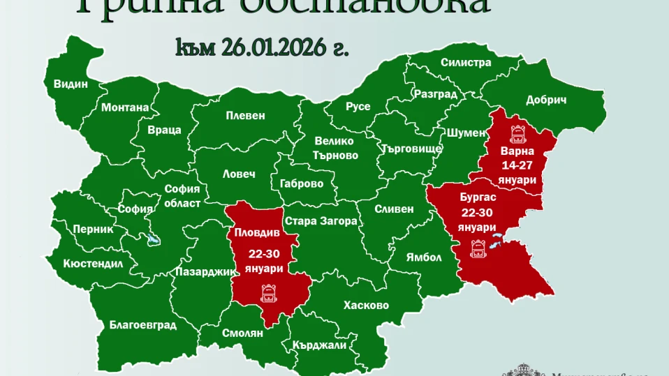 До 30 януари същите мерки са в сила и за област Бургас. В Добрич обаче грипната епидемия вече е отменена, като това предстои и във Варна, където тя е в сила до утре – 27 януари.