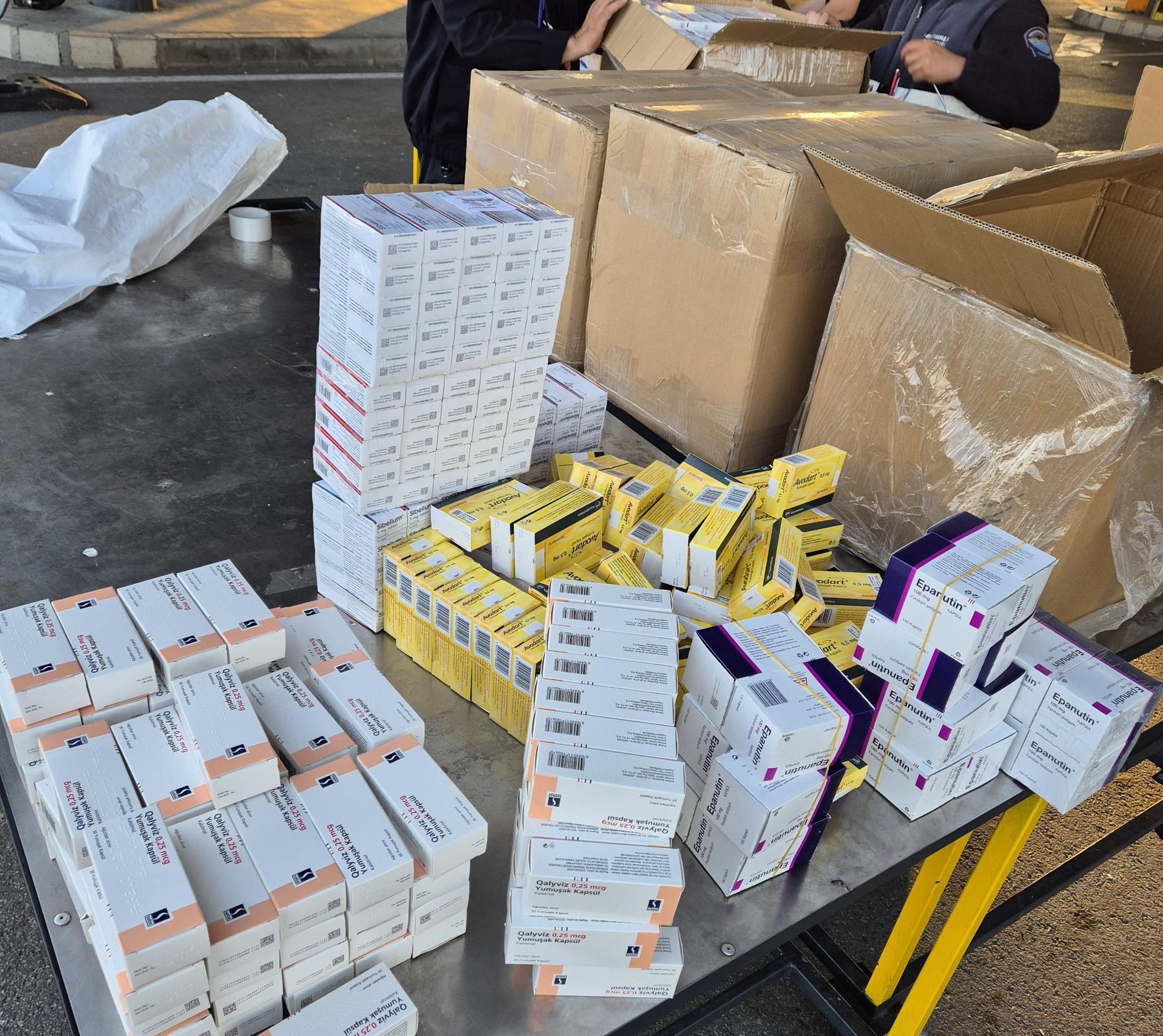 При последвалия физически контрол са открити недекларирани 12 кашона, пълни с медикаменти с различно предназначение, част от които за диабет, хипертония, епилепсия, подагра, както и анаболни стероиди. Открити са общо 85 650 таблетки, 17 430 капсули, 4292 сашета и 6810 мл разтвори.
