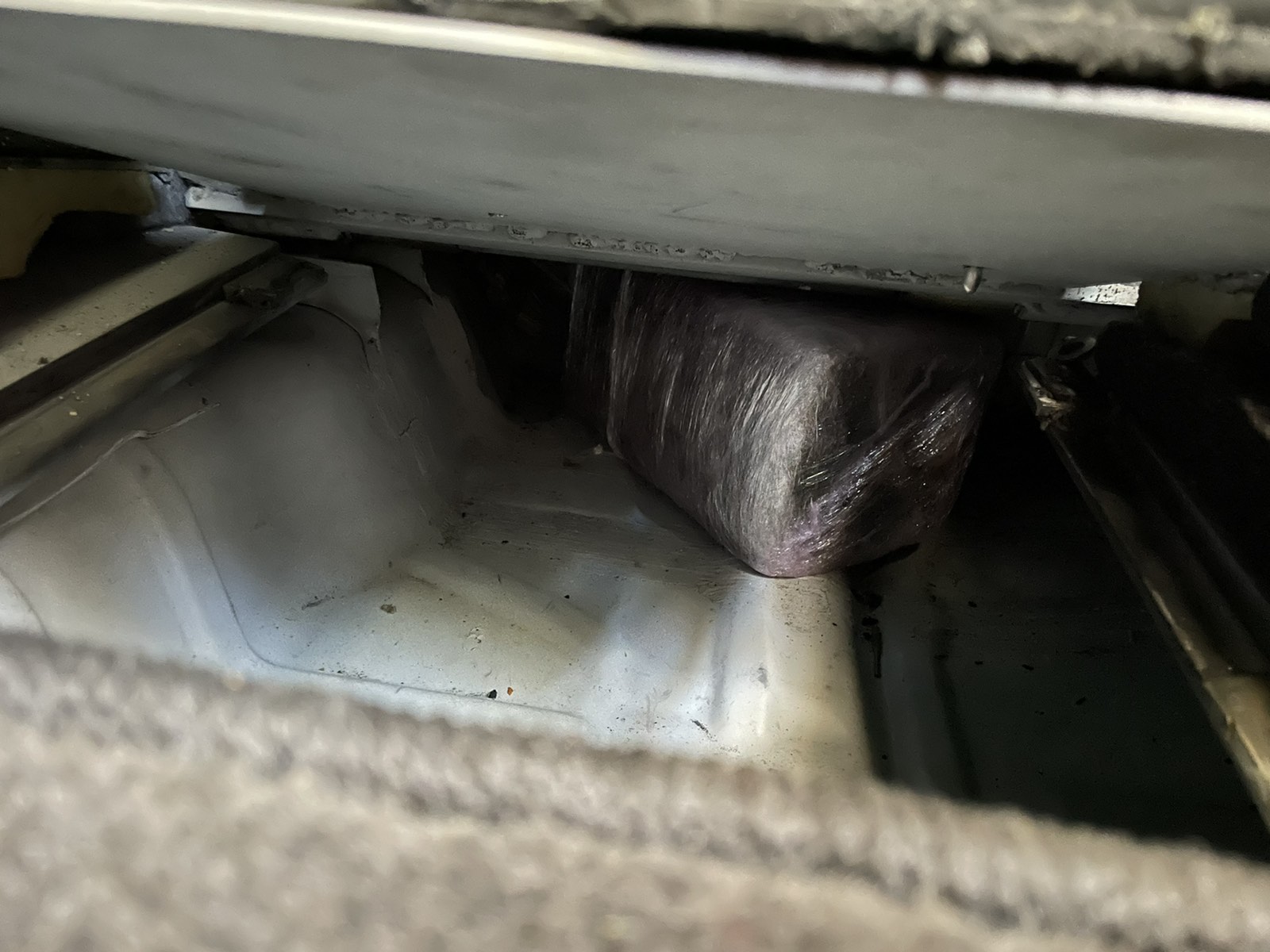 Под предната лява седалка бил открит специално изграден тайник, който се отварял с автоматичен механизъм. В него били укрити три пакета бяло прахообразно вещество, съобщават от Агенция "Митници".