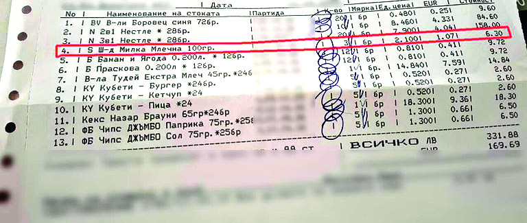 Гражданин подава сигнал на сайта antispekula.bg за над 100% надценка на цената на шоколад. Той показва документ, според който доставната цена на шоколада е 2,10 лв. за брой, а крайната цена за потребителите в магазина е 4,79 лв. Представяме тези данни с уговорката, че не е ясно откъде гражданинът има данни за доставната цена на стоките в магазина. Но контролните органи имат право да изискат тази информация и да направят проверка.