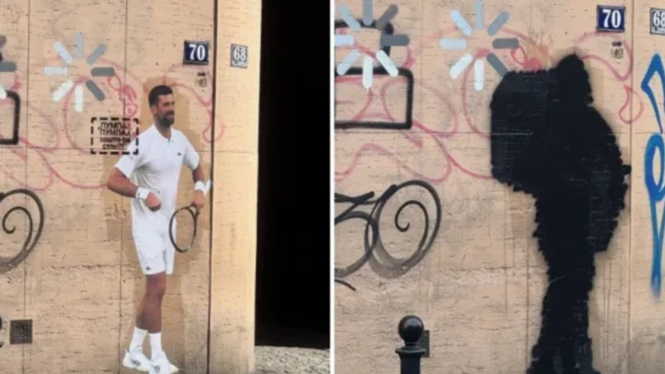 Mural posvećen Novaku Đokoviću, koji se nalazi u centru Beograda, poliven je crnom farbom.