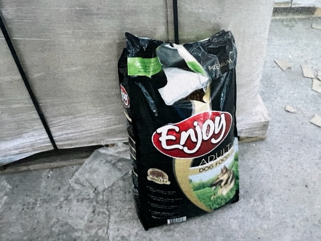 В черен чувал и 6 броя пликове с надпис „Enjoy Adult Dog Food“ са установили прозрачни полиетиленови пакети, съдържащи вещество с кристална структура с общо тегло 3 608.39 гр. При направен тест веществото е реагирало на метамфетамин.