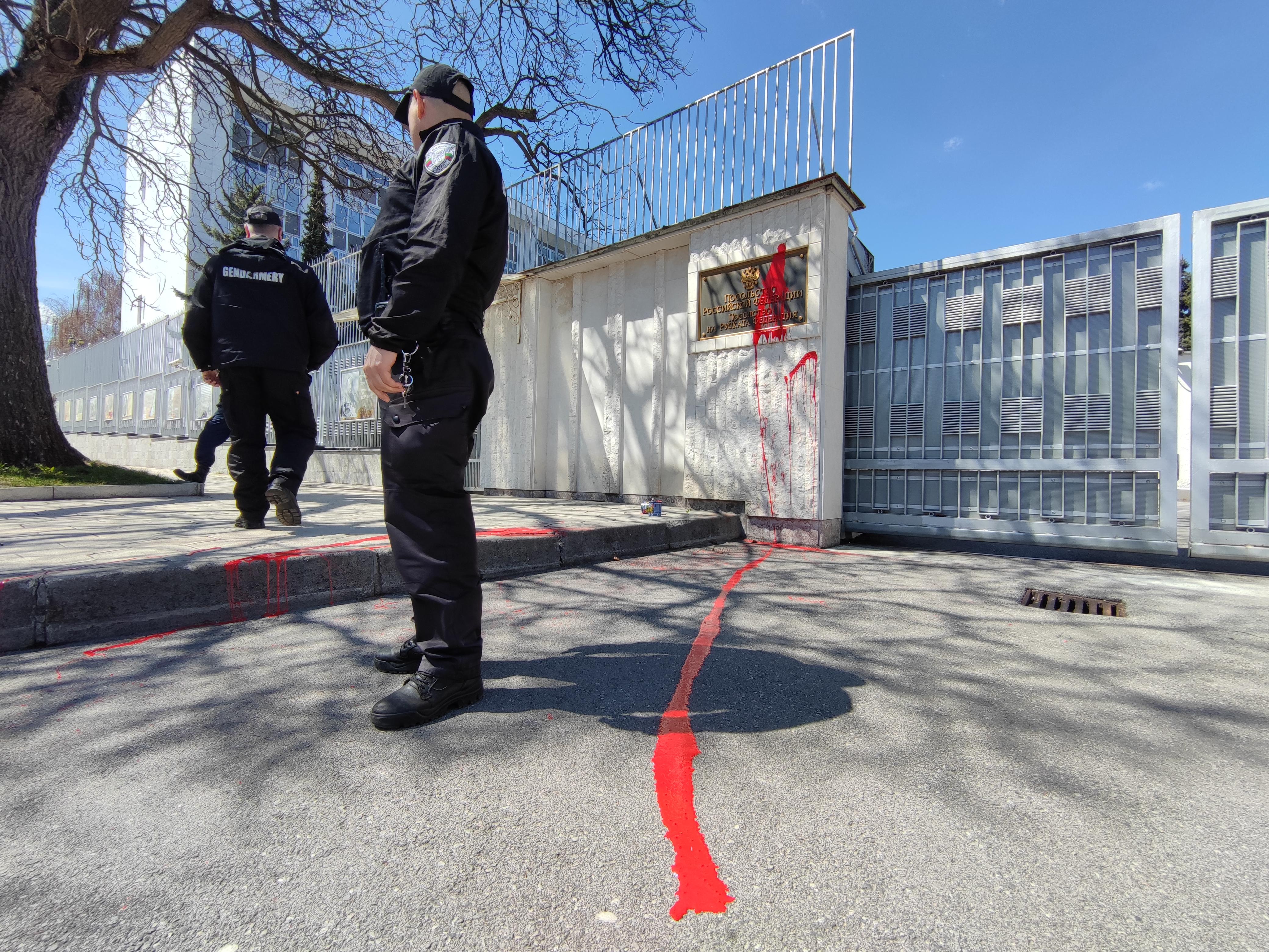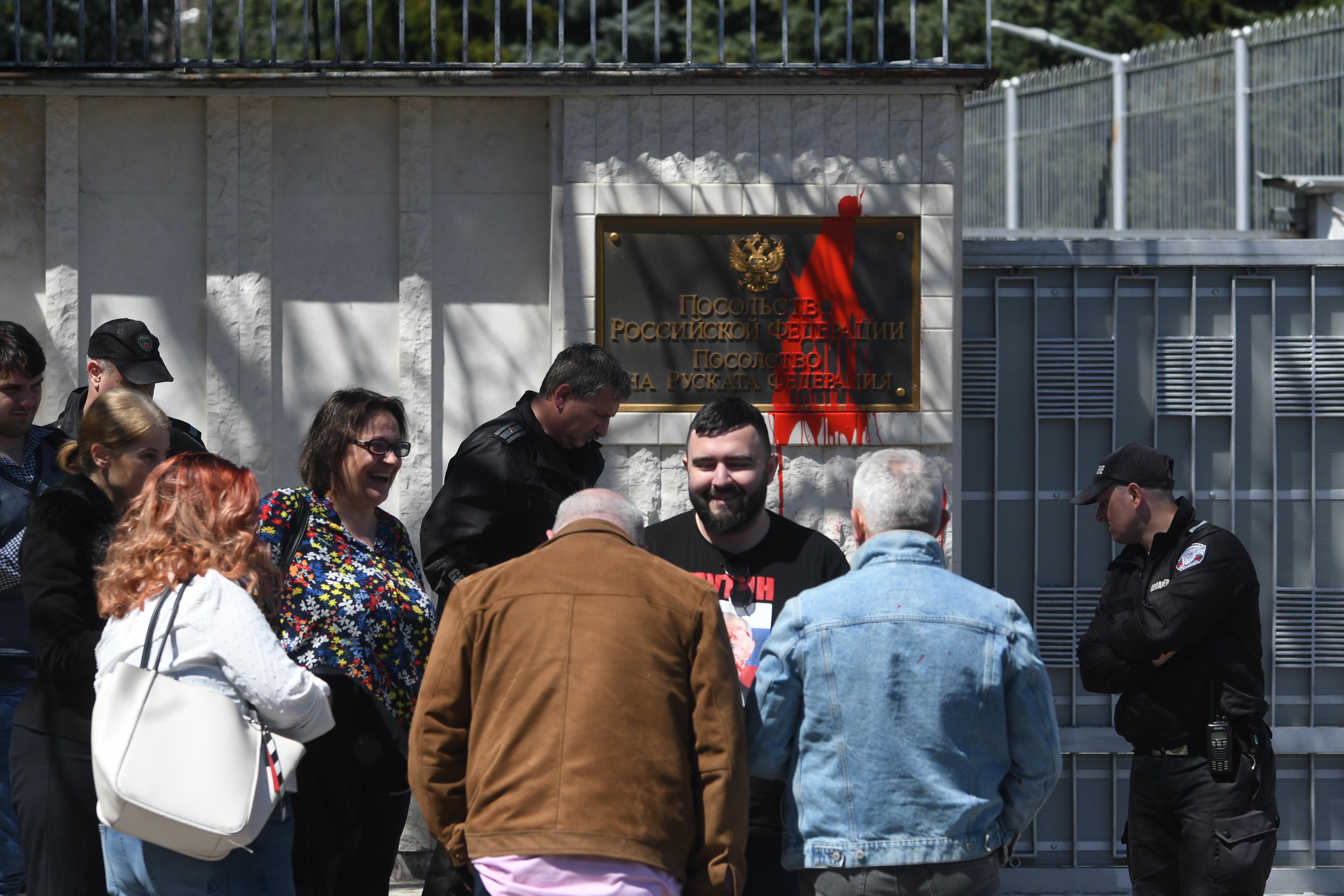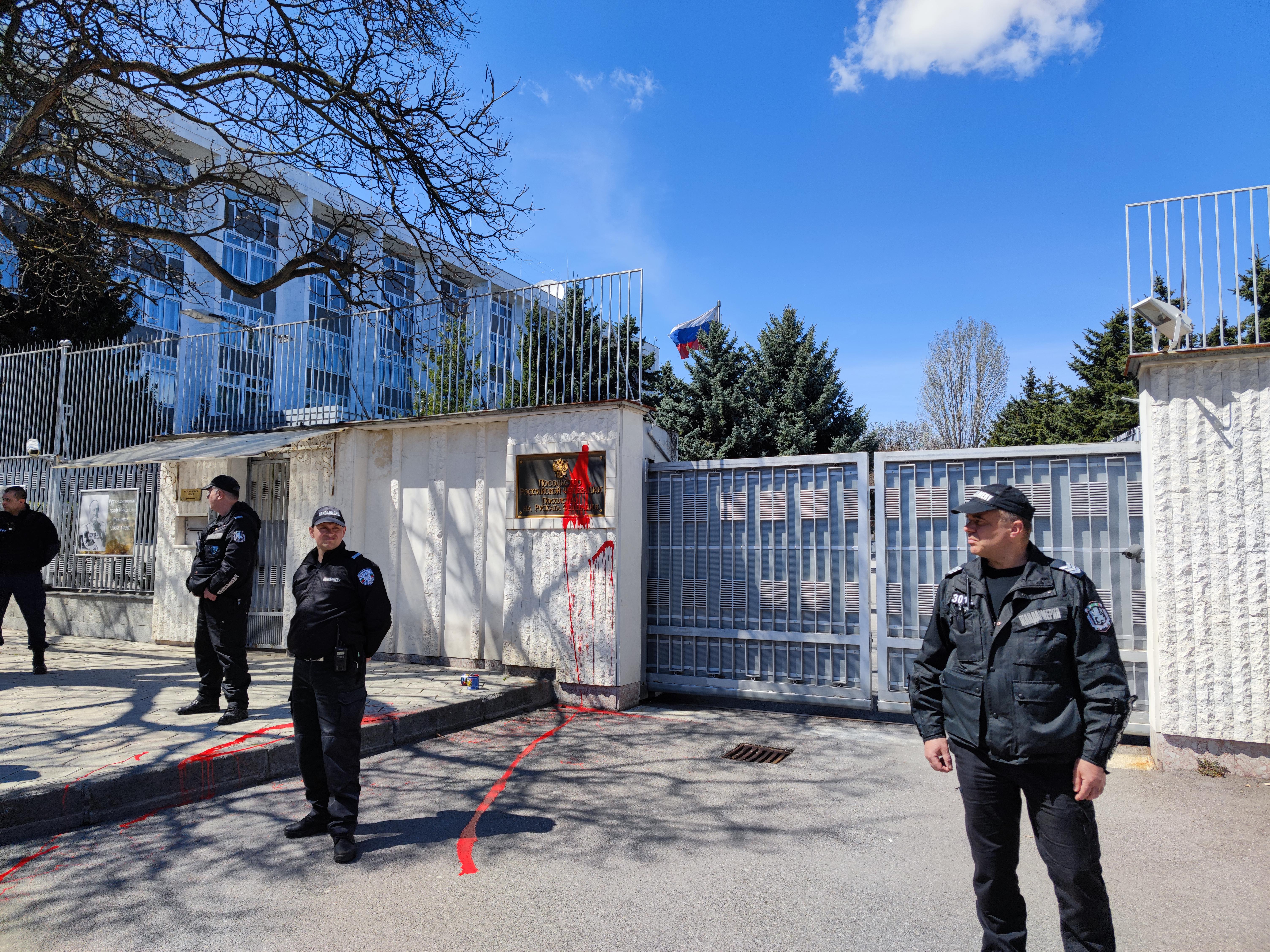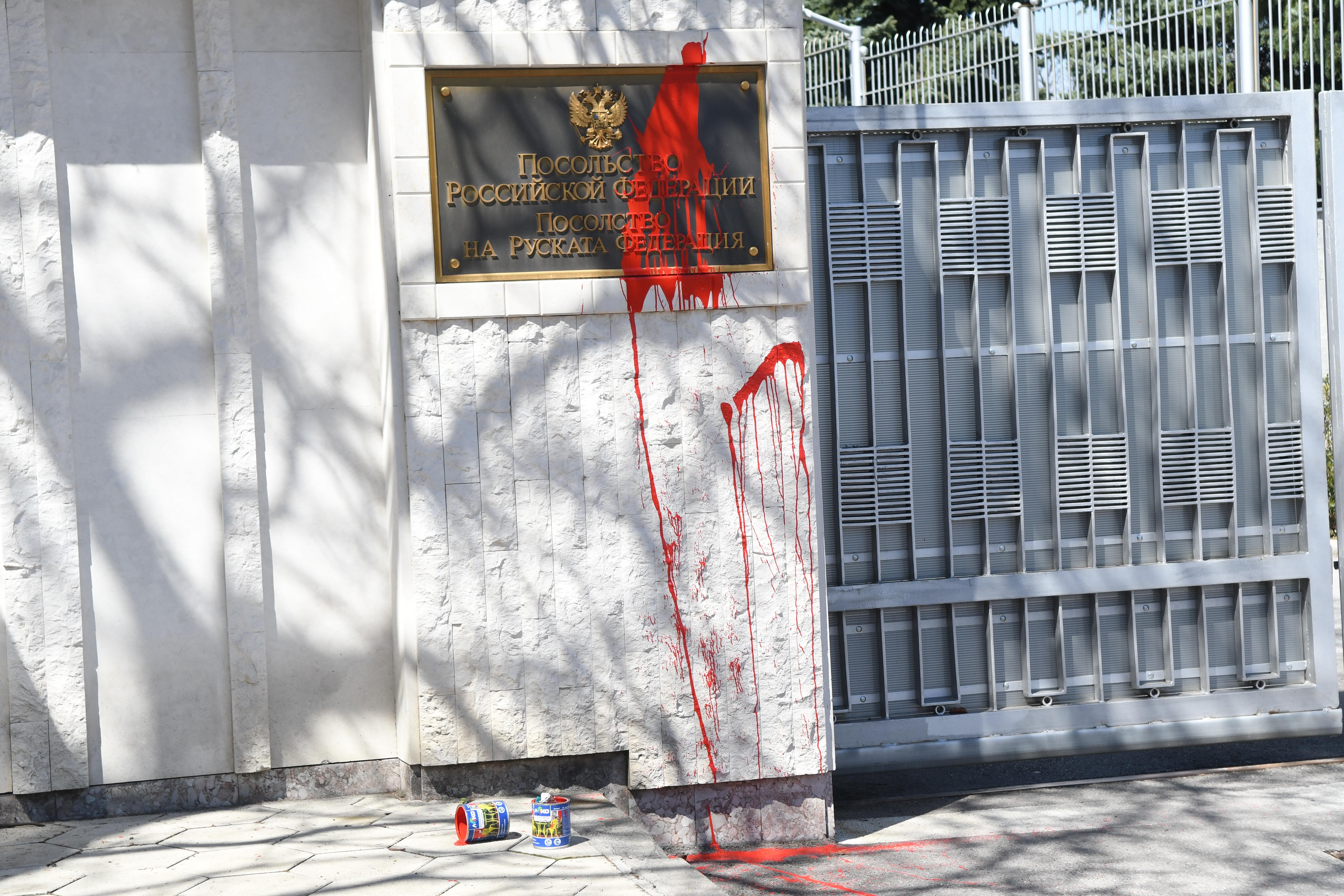 Причината е, че двамата заляха с червена боя табелата на руското посолство в София в знак на протест и като символ на пролятата кръв в Украйна.