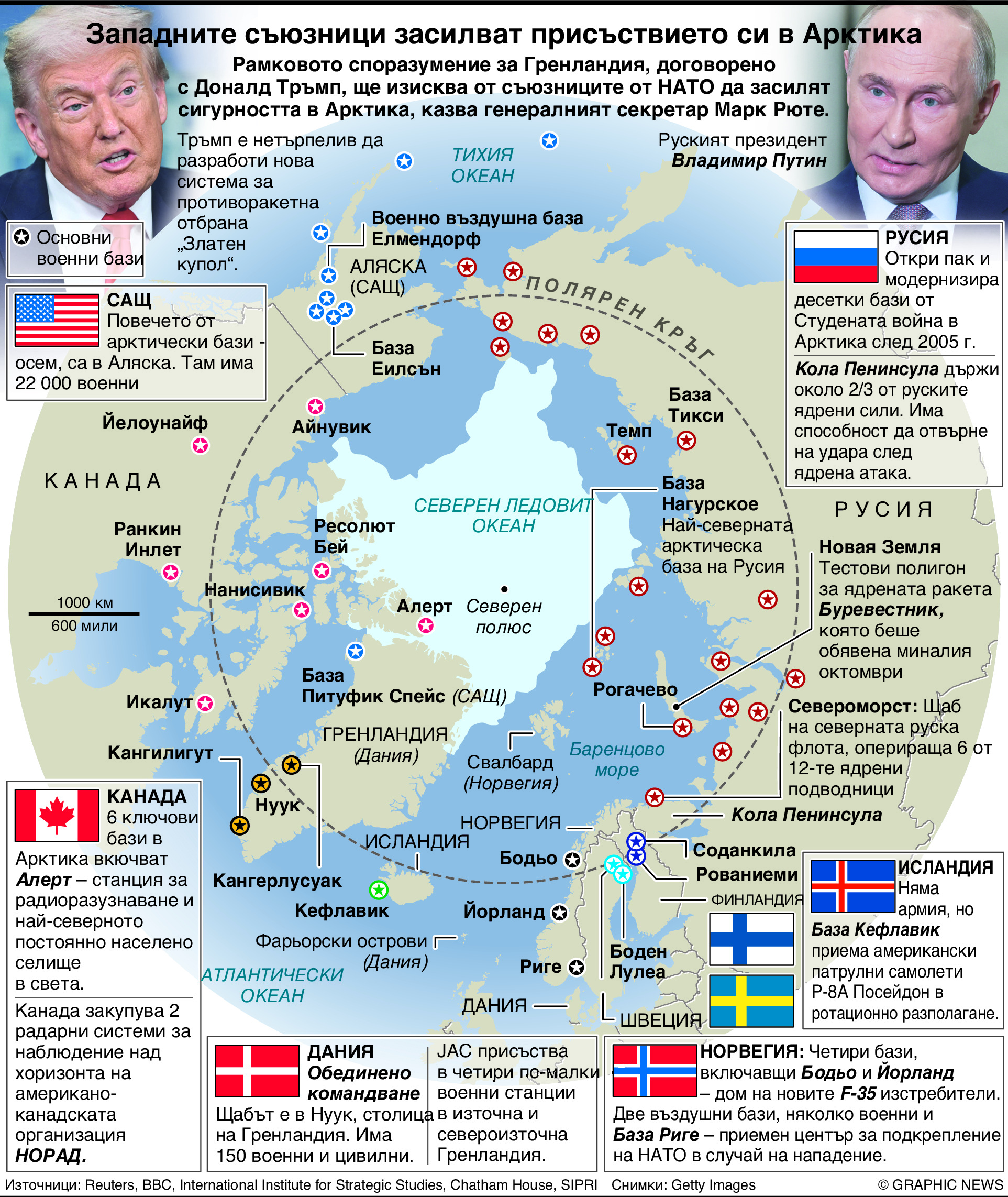 Рамковото споразумение за Гренландия, договорено с Доналд Тръмп, ще изисква от съюзниците от НАТО да засилят сигурността в Арктика, казва генералният секретар Марк Рюте.