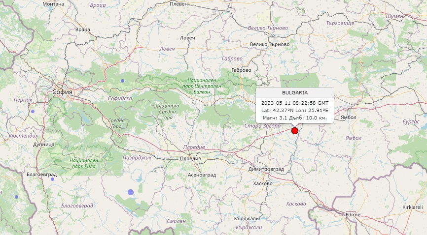 Земетресение от 3,1 по Рихтер е регистрирано в Стара Загора, показват данни на Националният институт по геофизика, геодезия и география към БАН.