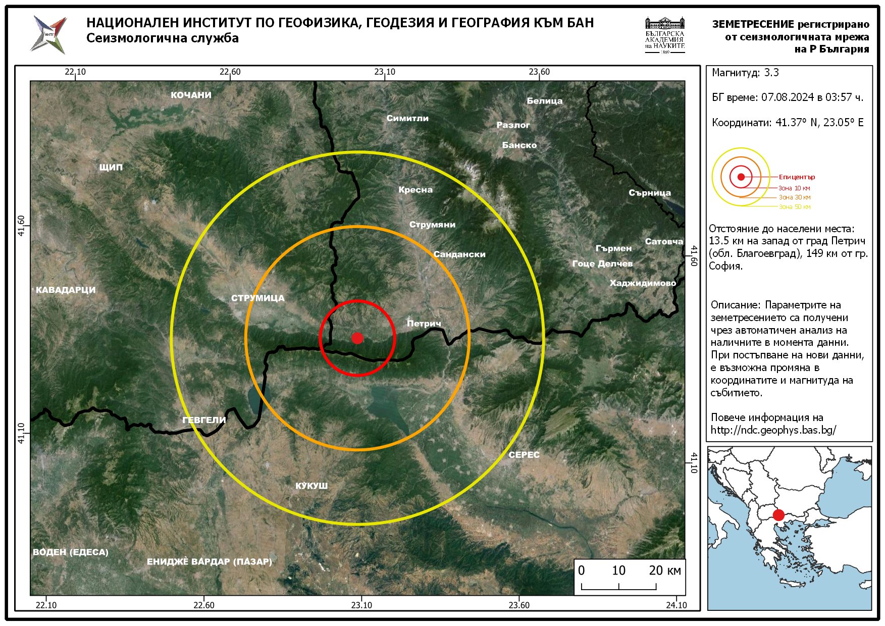 По данни на Националния сеизмологичен център към Национален институт по геофизика, геодезия и география - БАН, събитието от 03:57 часа българско време.