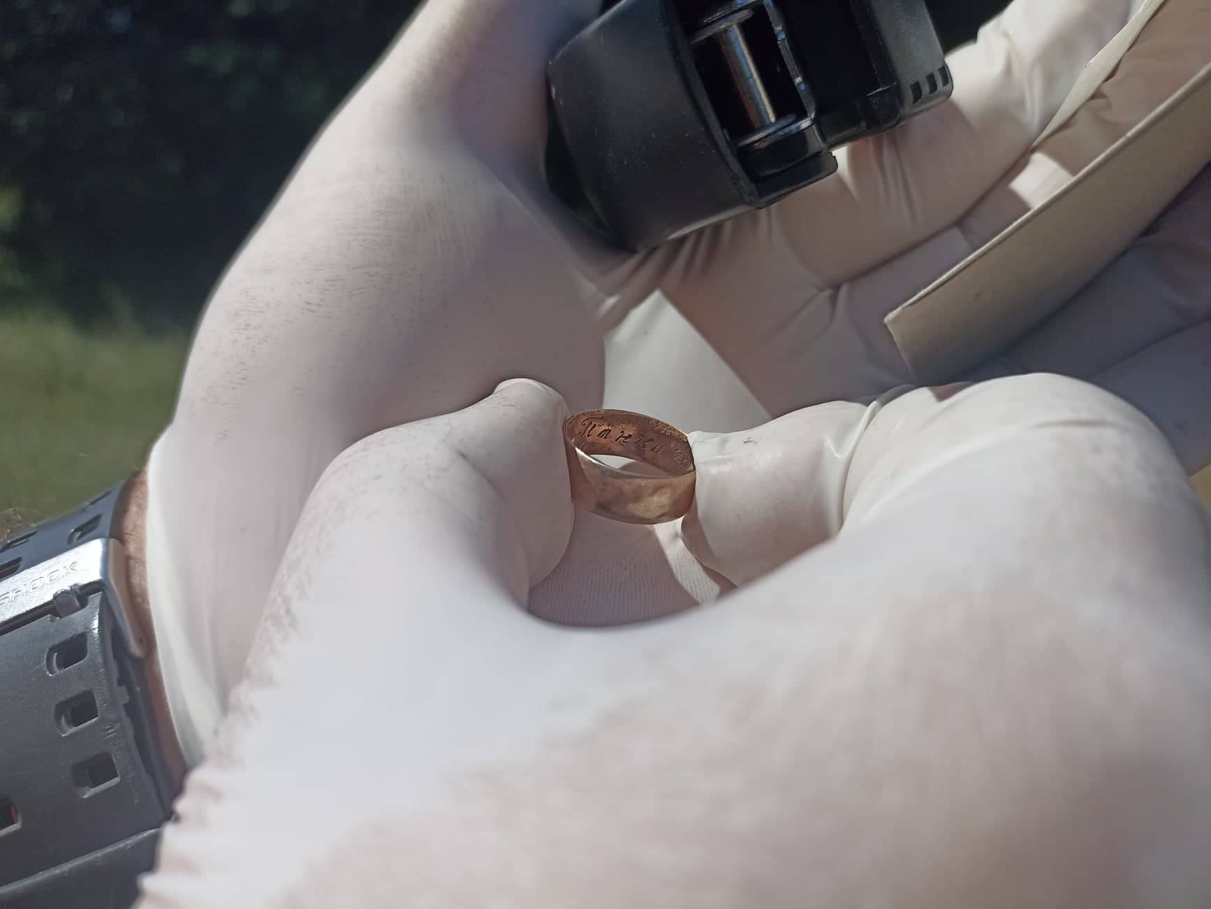 На вътрешната й част е изписано името Панко, а отбелязаната дата е 20 ноември 1966 година. Вероятно е на съпругата. Собственикът може да си я получи в РУ - Шумен срещу съответните доказателства за принадлежност, съобщават от полицията. ОДМВР- Шумен благодари на Николай и Йоан и всички деца, които са на зелено училище за доброто дело.