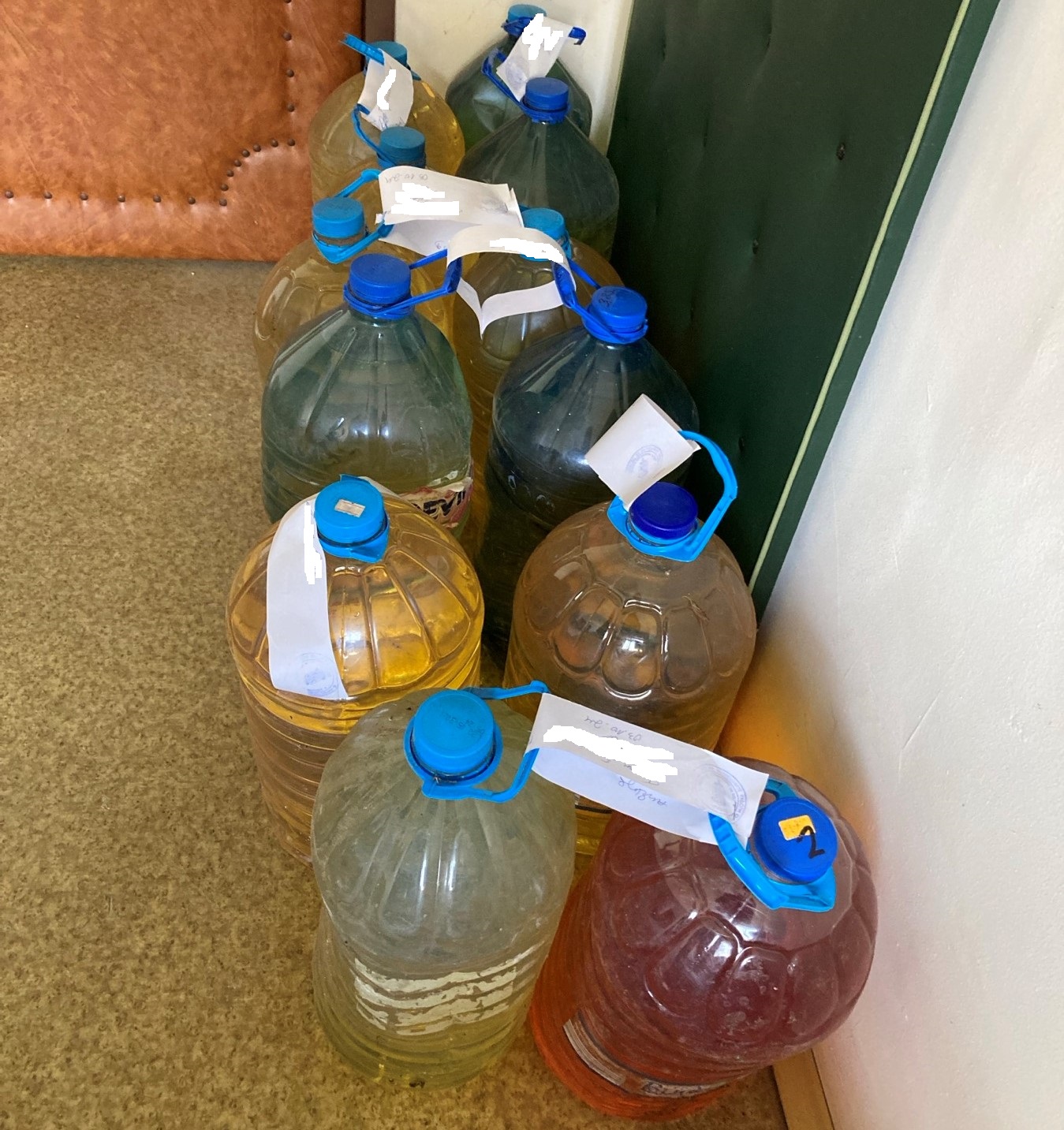 Още 124 литра наливен петролен продукт, с мирис на бензиново гориво, и 110 литра, с мирис на дизелово гориво, полицаите намерили на втория адрес. Допълнително били установени и общо 48 кг храни от животински произход /кайма и колбаси/ с изтекъл срок на годност, по отношение на които е взето отношение по Закона за храните.
