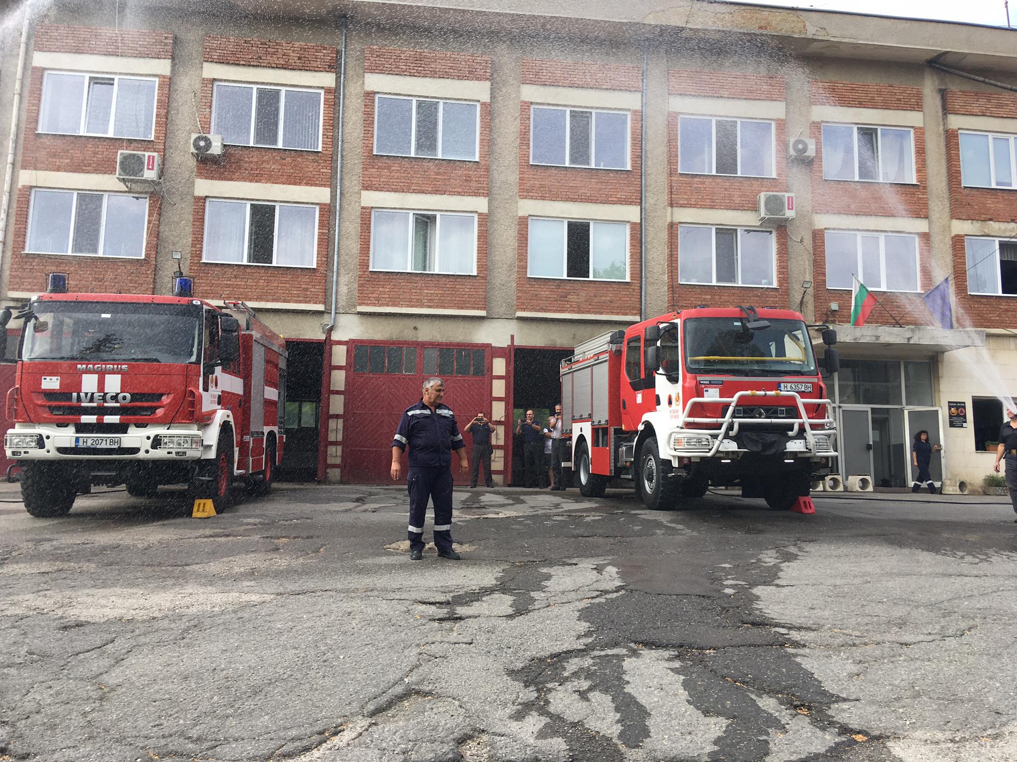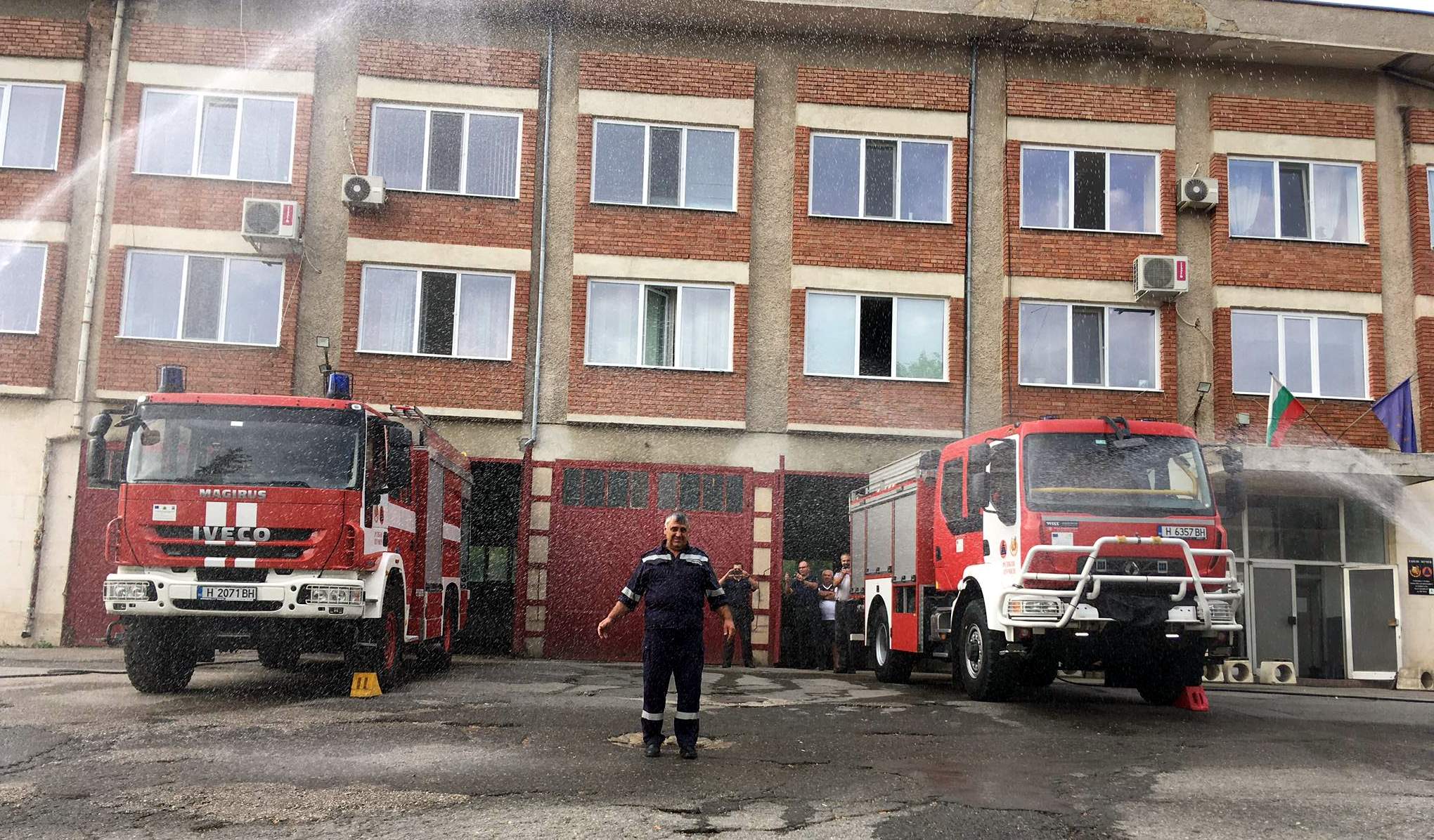 В петък огнеборците от Регионална дирекция "Пожарна безопасност" в Шумен изпратиха в заслужен отдих младши инспектор Диян Христов след 40 години вярна служба. Днес той навърши 60 години и колегите му организираха подобаващо изпращане с традиционния ритуал за пожарникарите - къпане от противопожарните автомобили с т.нар. водна дъга.