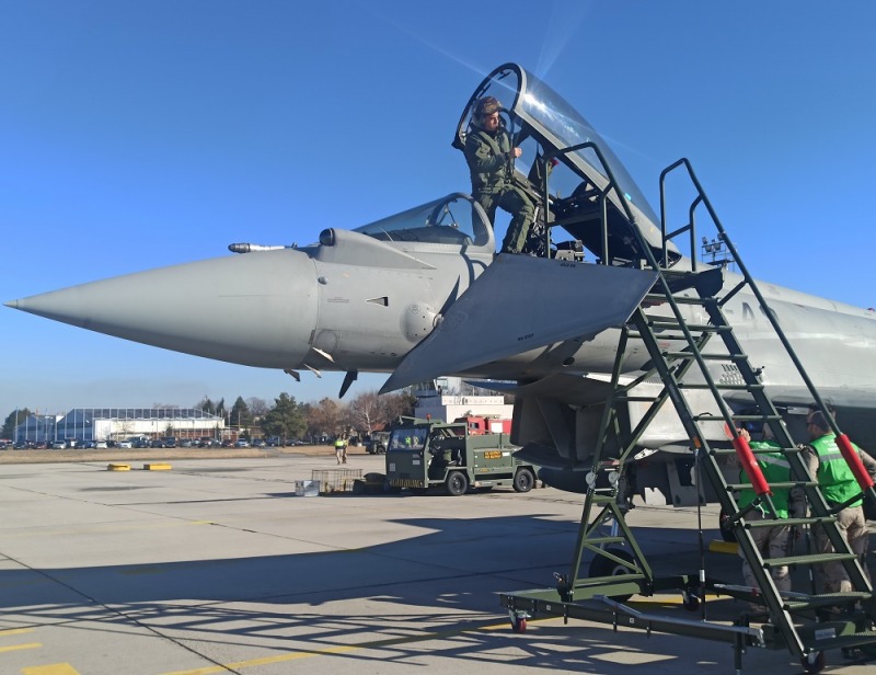 И днес испанските изтребители Eurofighter летят над България в районите на София, Варна, Бургас и Безмер в рамките на изпълнение на задачи по охрана на въздушното пространство, съвместно с българските военновъздушни сили.