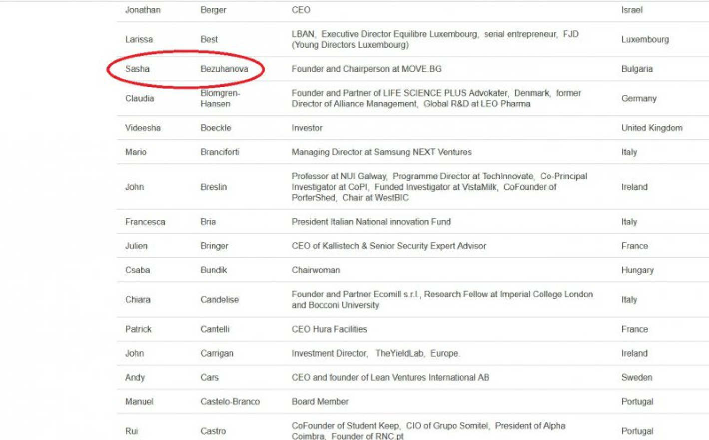 От Министерството на иновациите и растежа също пратиха разяснение за програмата, включително списък с европейските експерти-оценители. В т.нар. в документа Жури фигурира името на Саша Безуханова.