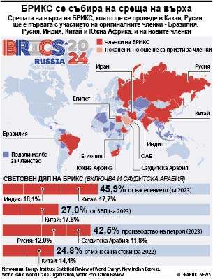 Решението си Казахстан обяви преди предстоящата на 22-24 октомври среща на върха на БРИКС, която ще се проведе в Казан, Русия. На нея са поканени 38 държави, 33 от тях са потвърдили участие. Китай и Бразилия ще бъдат представлявани от президентите си, Индия - от премиера. На срещата ще присъстват и генералният секретар на ООН Антонио Гутериш, както и президентката на Новата банка за развитие(на БРИКС) Дилма Русеф.