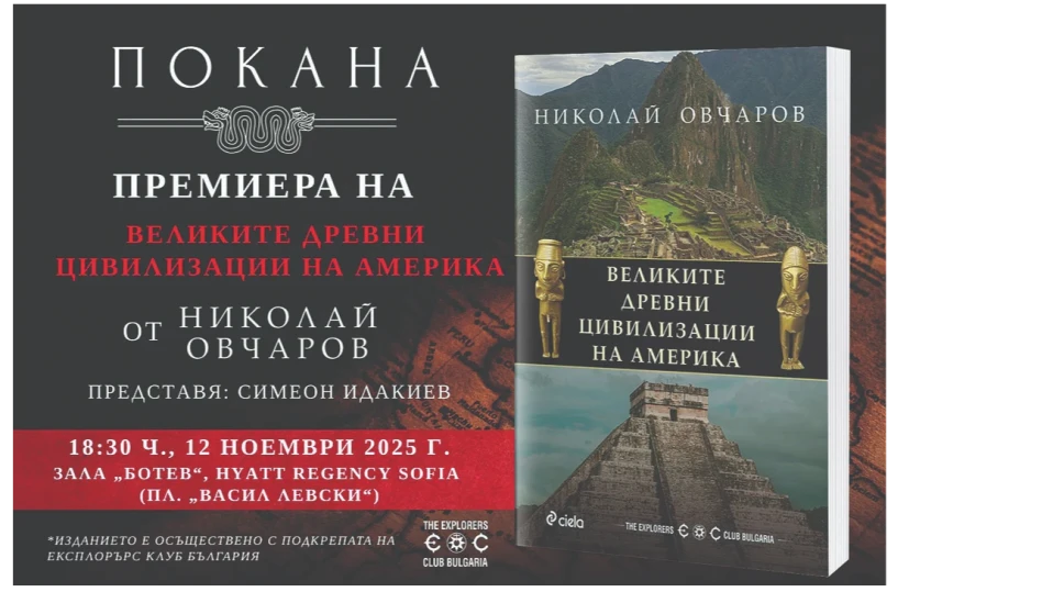 Нарочно цитирам цял пасаж от встъпителните думи на моята нова книга “Великите древни цивилизации на Америка”, появила се буквално преди дни на книжния пазар. Тя е едно прекрасно оформено печатно произведение на Издателство “Сиела”, което съдържа 315 с. и повече от 100 цветни илюстрации. Книгата се издава със съдействието на Експлорърс Клуб България - една организация, която вече година и половина развива изключителна дейност, а нейните представители пътешестват по целия свят.