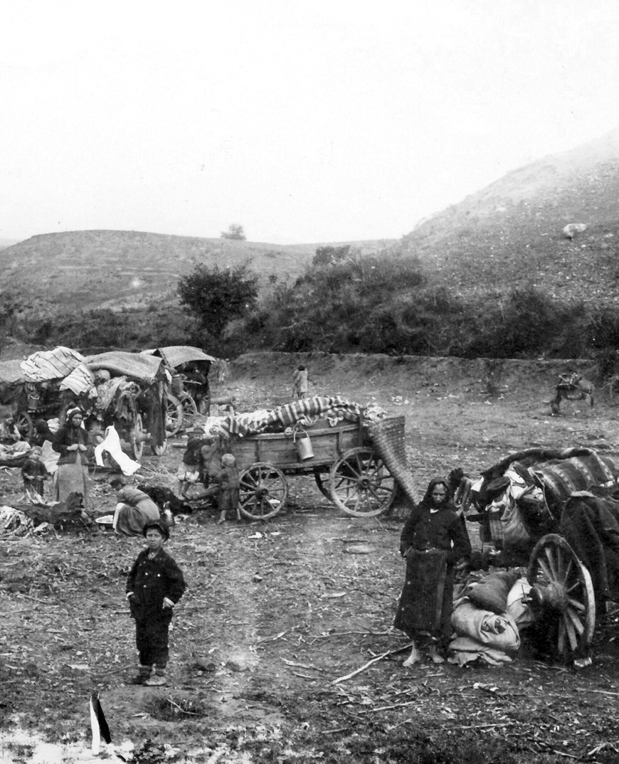 Български бежанци от с. Петрово след гръцкото нападение в Петричкия край през 1925 г. във временен лагер в България.