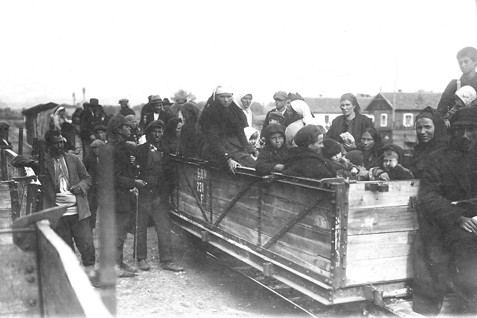 Български бежанци след гръцкото нападение в Петричко през 1925 г., натоварени заедно с покъщнината си на влакова композиция на гара Левуново.
