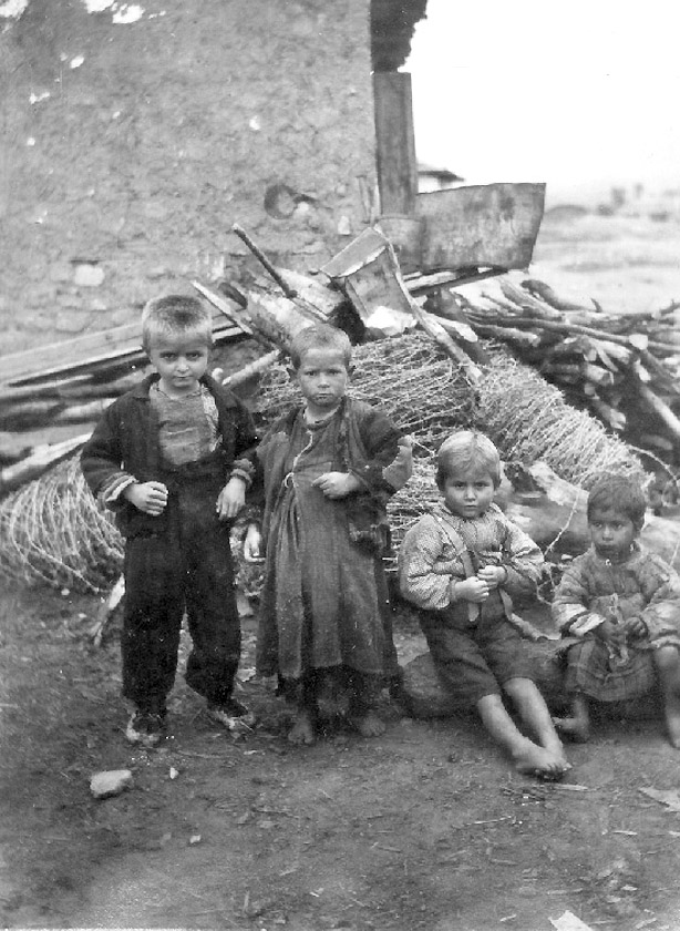 Деца, загубили родителите си след гръцкото нашествие в Петричко през 1925 г., настанени в бежански лагер в България.