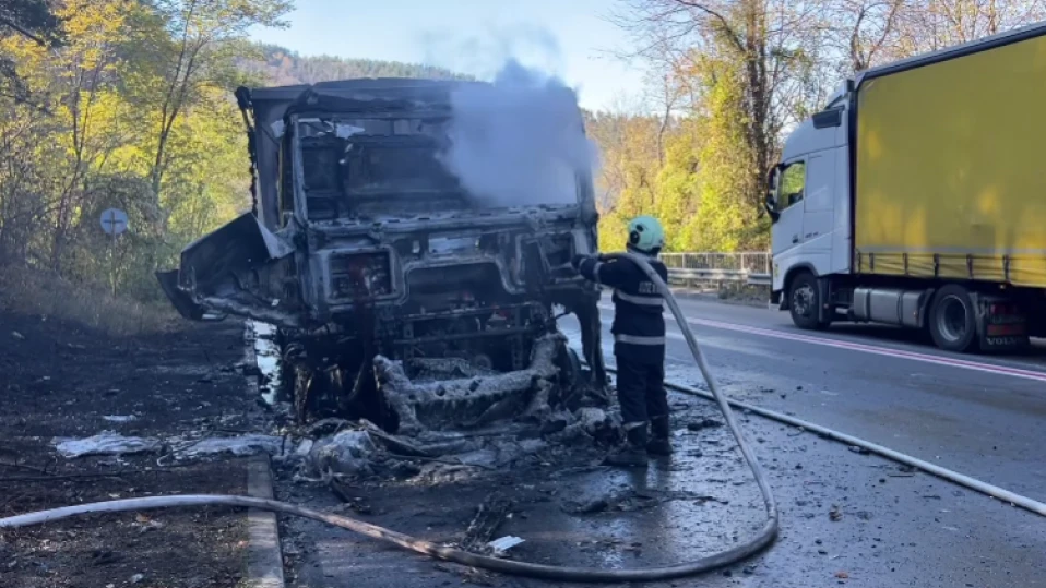 Пожар в тежкотоварен камион затрудни движението на Прохода на Републиката.