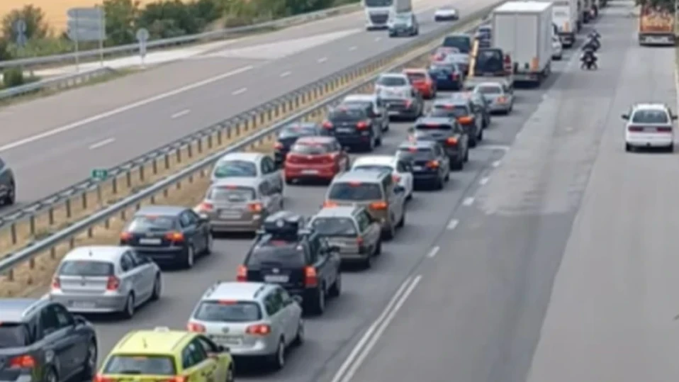 Километрично задръстване на 78 км на АМ "Тракия" в посока София. Шофьори съобщават, че се движат бавно.